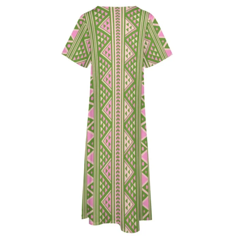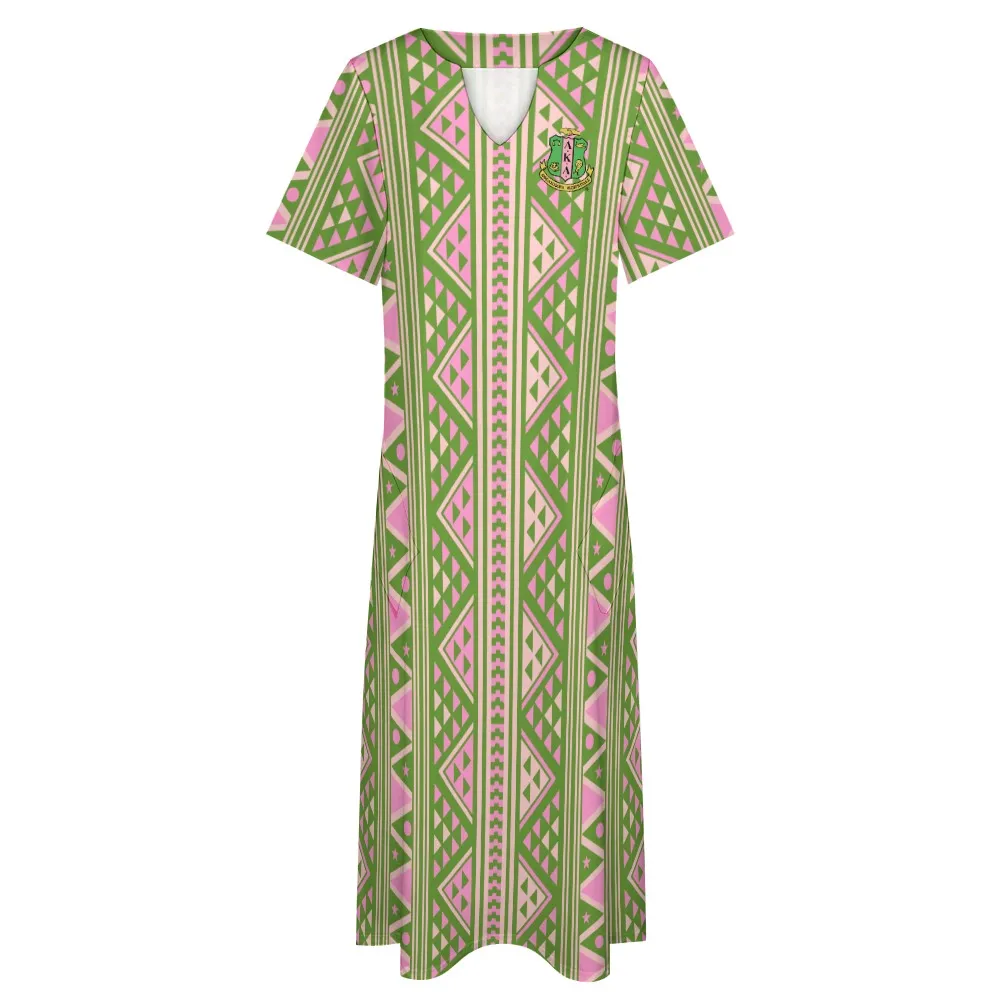 This Alpha Kappa Alpha women’s dress features a flattering 7-point sleeve design in your signature pink and green. Crafted from soft polyester, this AKA apparel piece transitions seamlessly from chapter meetings to homecoming celebrations. Represent your sisterhood in style with The D9 Standard.
