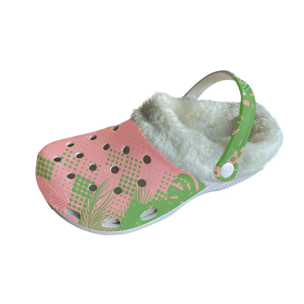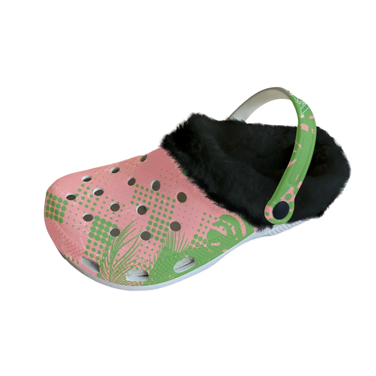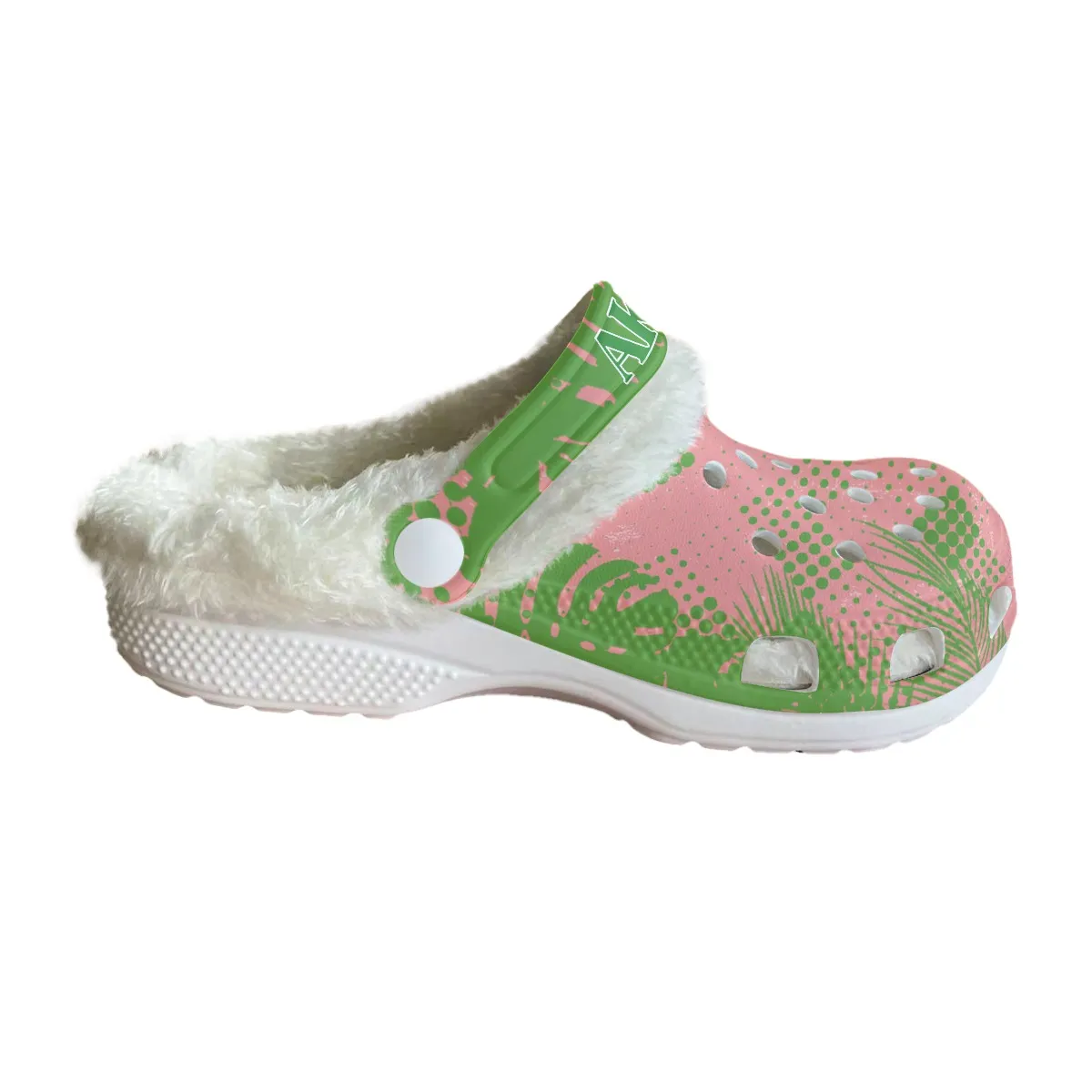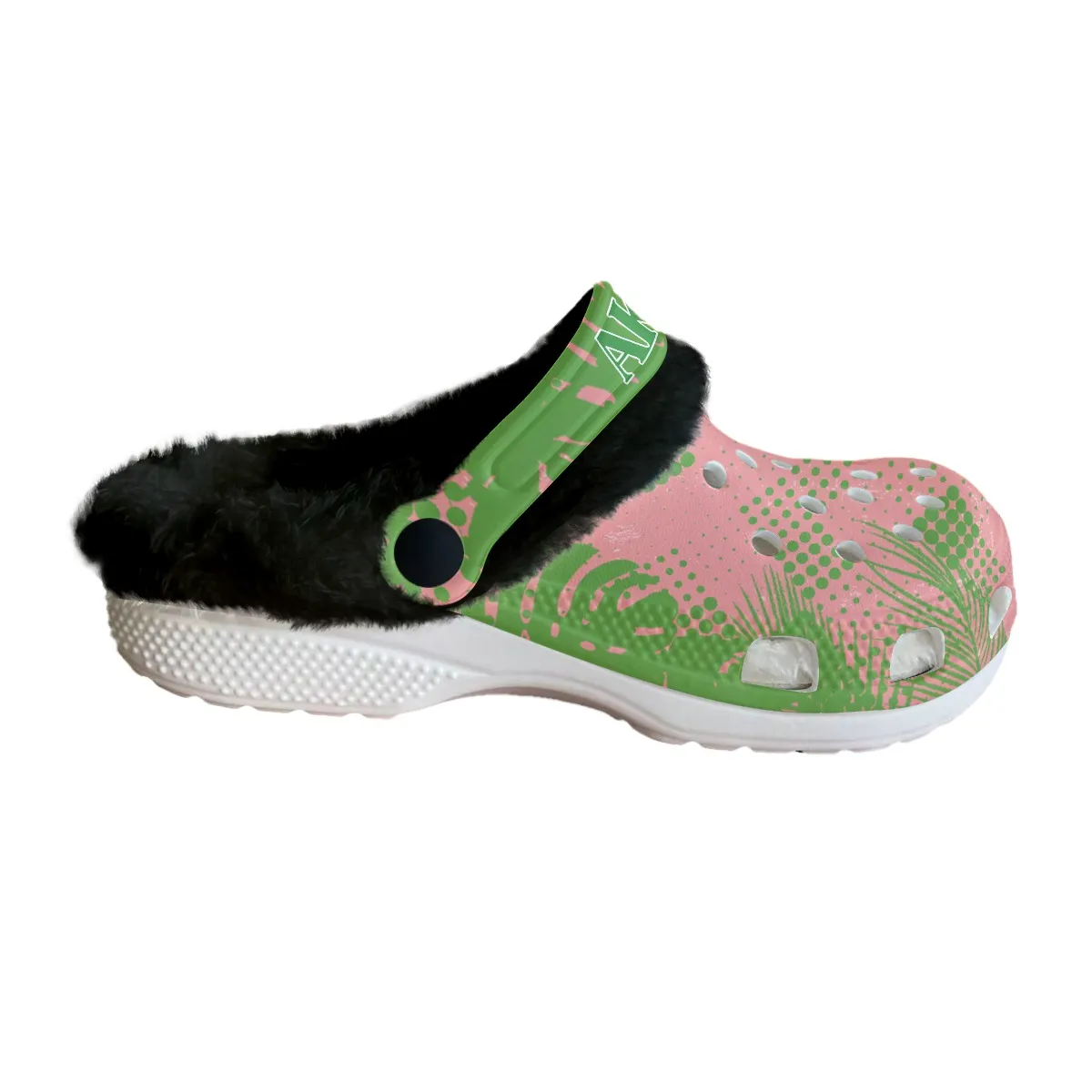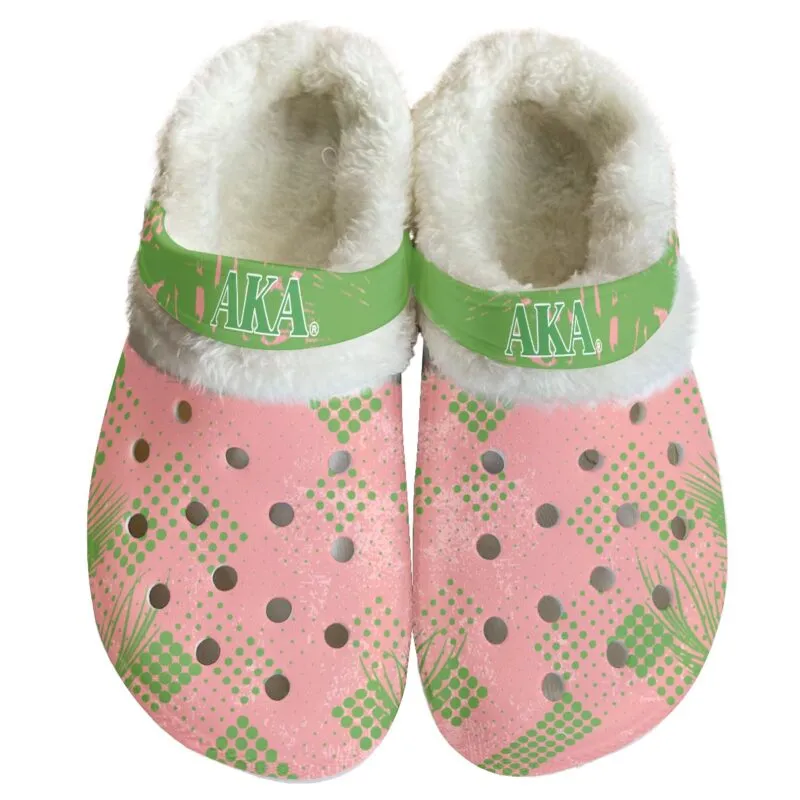 Alpha Kappa Alpha women’s fleece-lined clogs blend cozy comfort with sorority pride in pink and green. This versatile AKA apparel transitions effortlessly from chapter meetings to casual campus days—wear them as slides or flip them back for full coverage. Premium AKA paraphernalia from The D9 Standard.