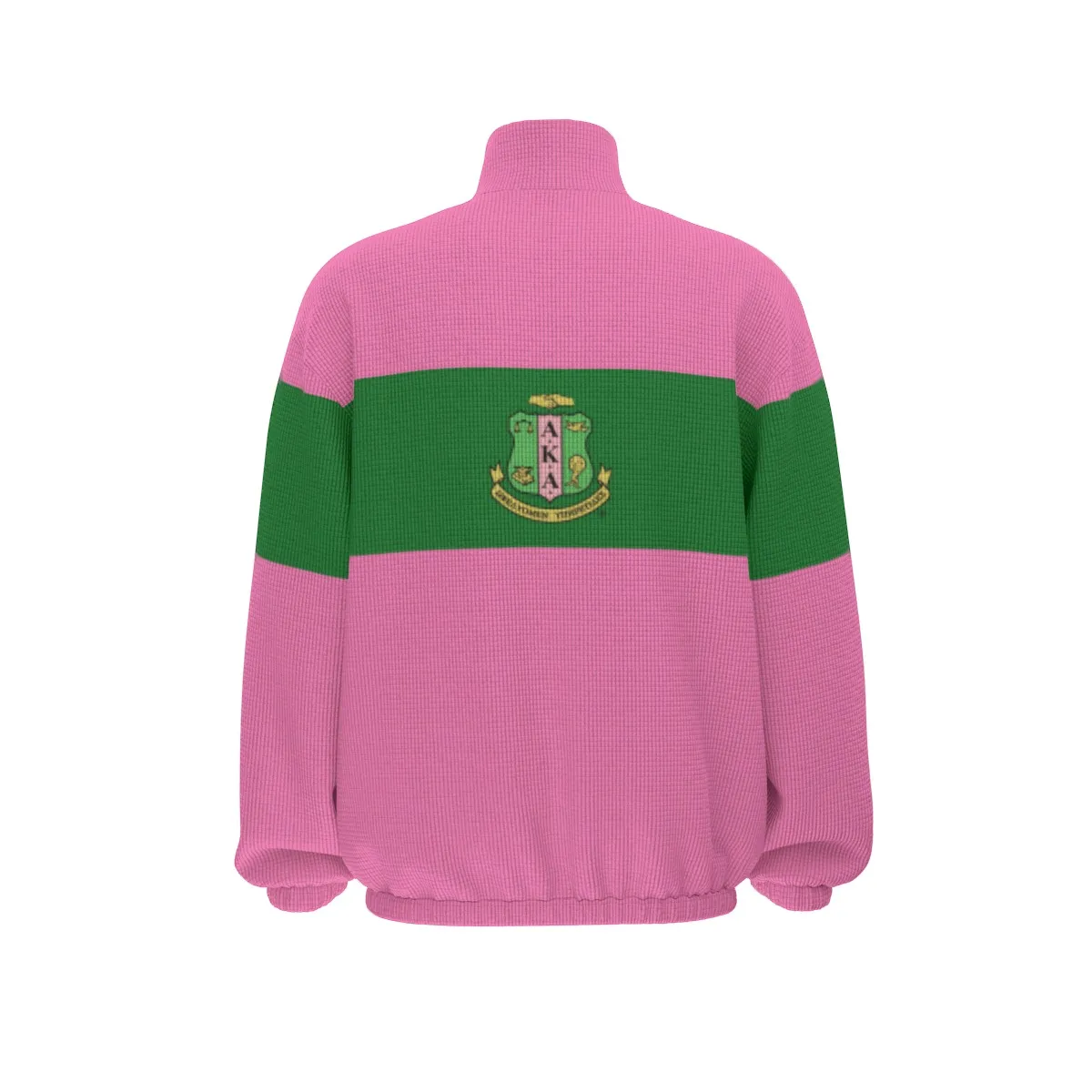 This Alpha Kappa Alpha women’s hoodie features bold color-blocking in signature pink and green for a standout look at homecoming or step shows. The turtleneck zipper design in a breathable polyester-spandex blend makes this AKA sweatshirt both comfortable and stylish. Exclusive AKA paraphernalia from The D9 Standard.