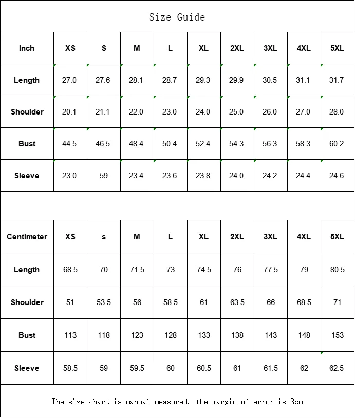 The size chart is manual measured, the margin of error is 3cm