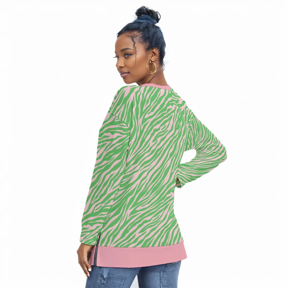 - Crew neck, long sleeve, side split