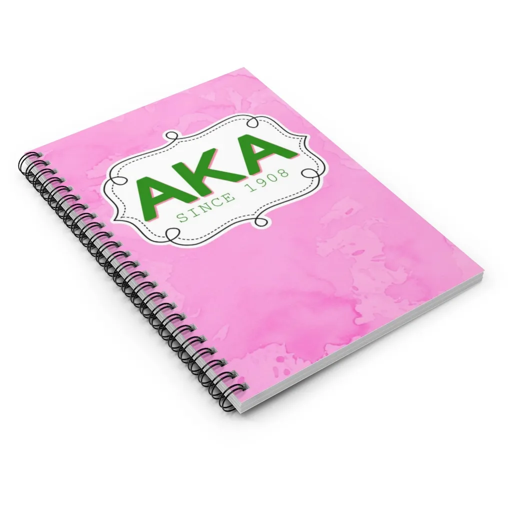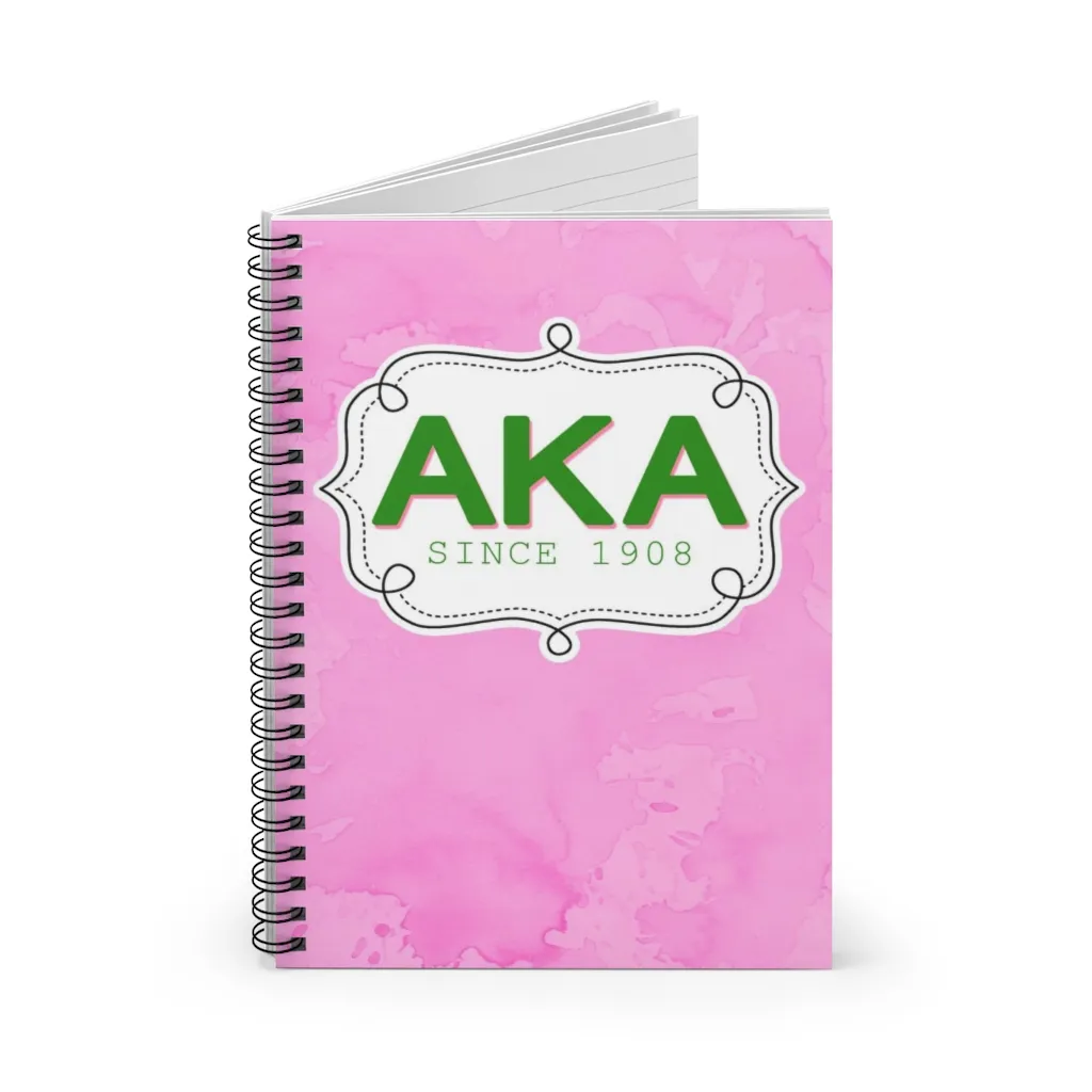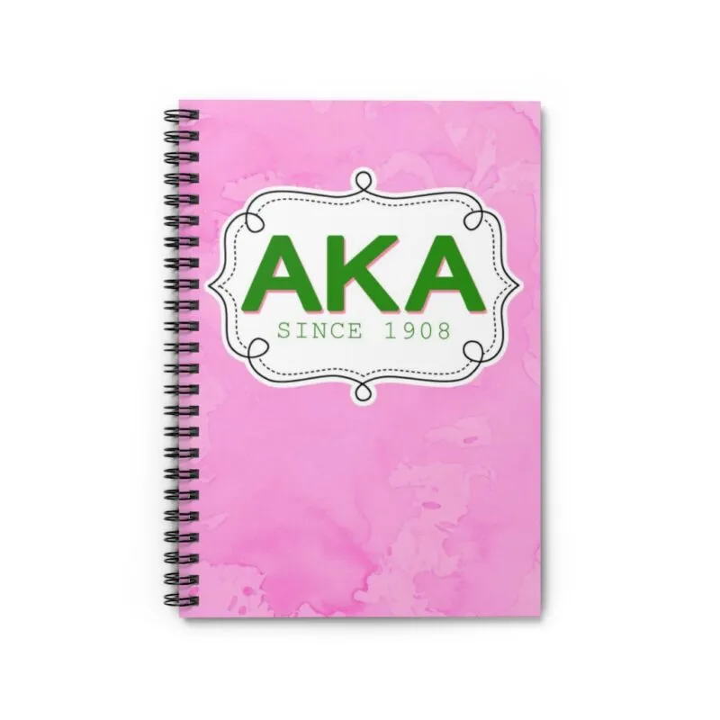 Alpha Kappa Alpha spiral notebook featuring 120 ruled pages with a durable printed cover in the sorority’s iconic pink and green. This AKA paraphernalia is perfect for taking notes at chapter meetings, capturing meeting minutes, or journaling your sisterhood journey. Quality aka apparel and accessories from The D9 Standard.