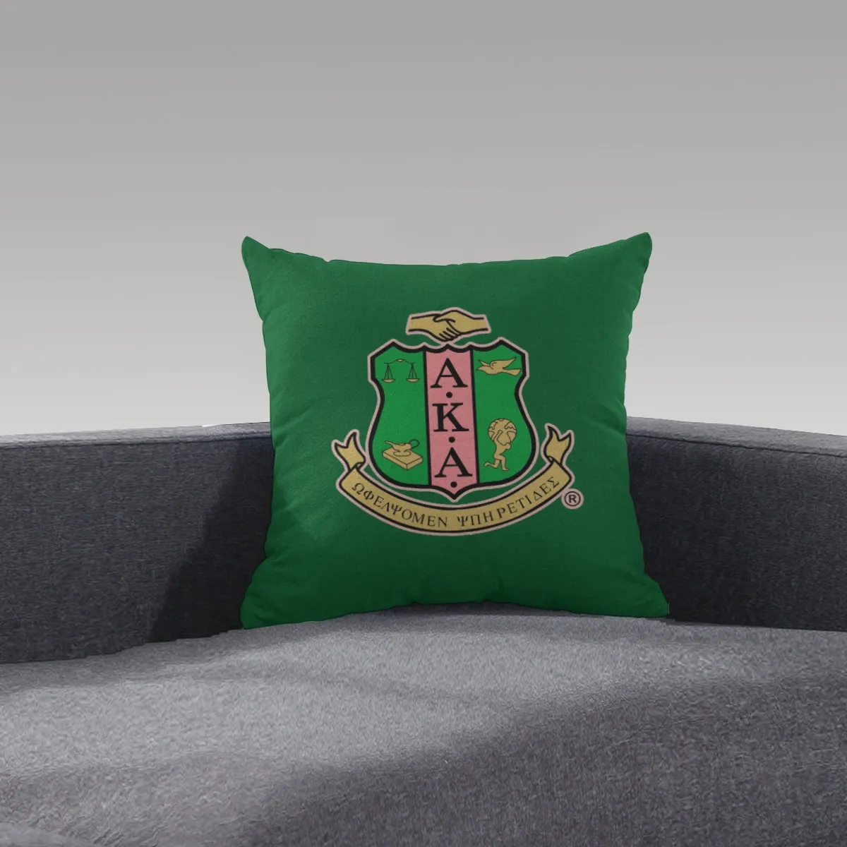 Elevate your space with this Alpha Kappa Alpha women’s square pillow featuring signature pink and green in an all-over design. Premium polyester construction with hidden zipper makes it ideal for your apartment, chapter house, or dorm during homecoming season. Show your AKA pride with quality paraphernalia from The D9 Standard.