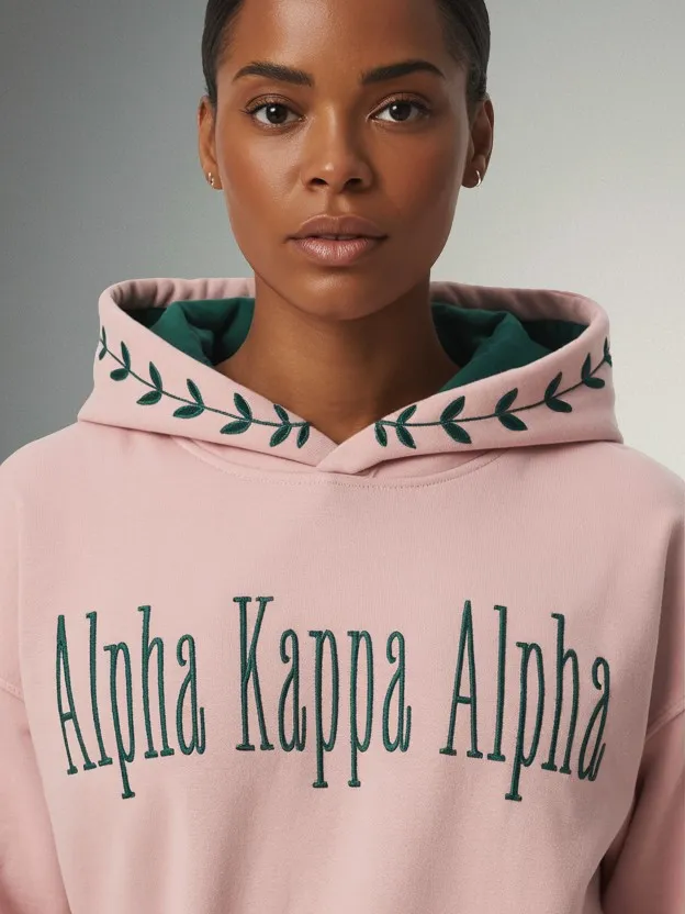 Elevate your AKA pride with this women’s Alpha Kappa Alpha hoodie featuring iconic Ivy Order symbolism in signature pink and green. This premium aka sweatshirt transitions seamlessly from chapter meetings to game day tailgates while representing sisterhood with style. Quality aka paraphernalia from The D9 Standard.