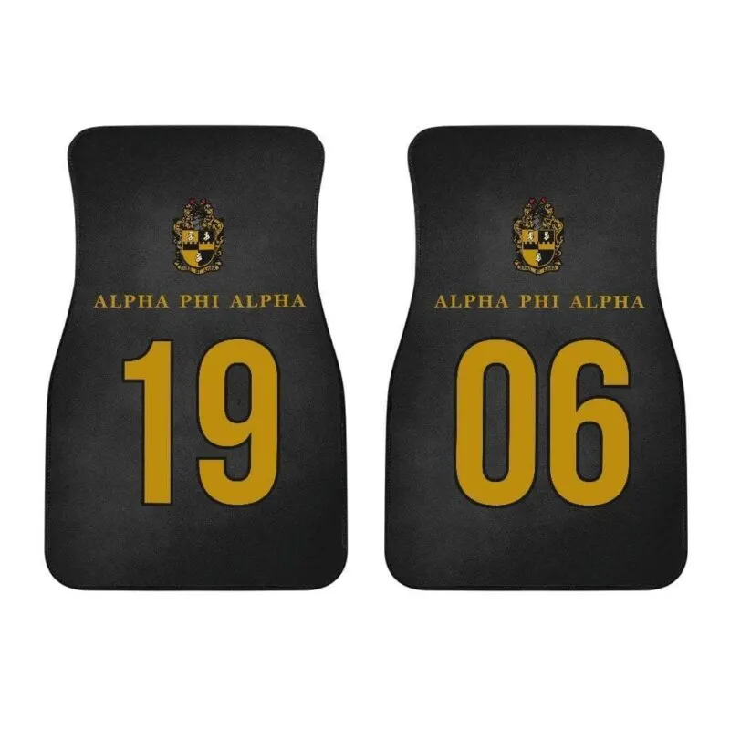 Alpha Phi Alpha car mats bring 1906 pride to every drive in classic black and old gold. Whether you’re rolling to chapter events or homecoming, these waterproof polyester mats protect your floors while showcasing your fraternity. Looking for standout alpha phi alpha gifts or probate gifts? The D9 Standard delivers quality Greek gear.