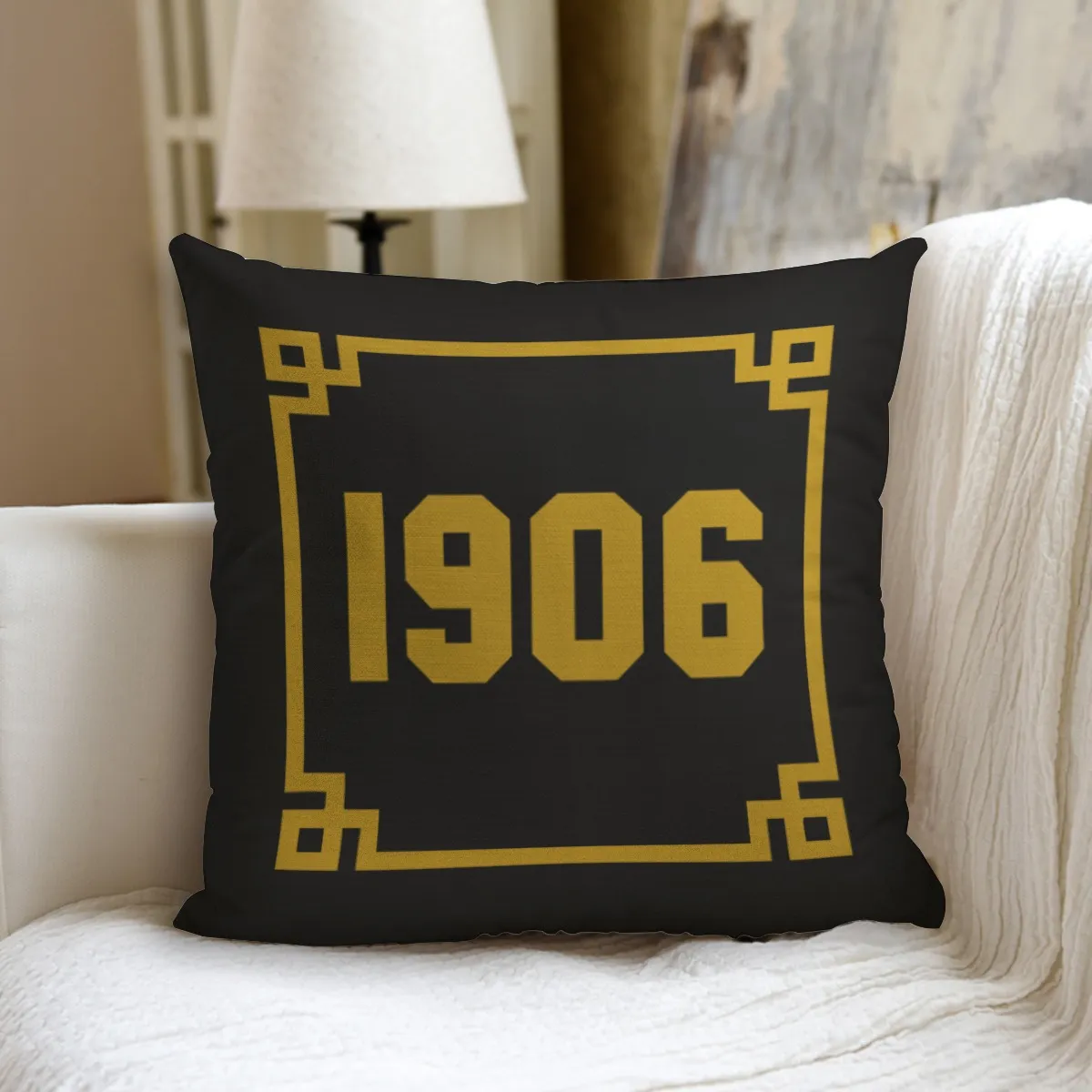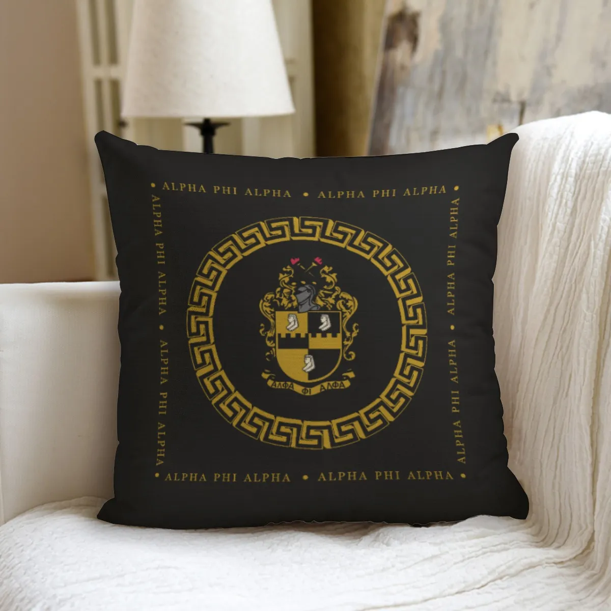 Alpha Phi Alpha pillow showcasing your fraternity’s iconic 1906 founding year in bold black and old gold. Makes a standout addition to alpha phi alpha probate gifts or your own chapter house décor. Crafted from durable polyester for lasting quality. The D9 Standard.