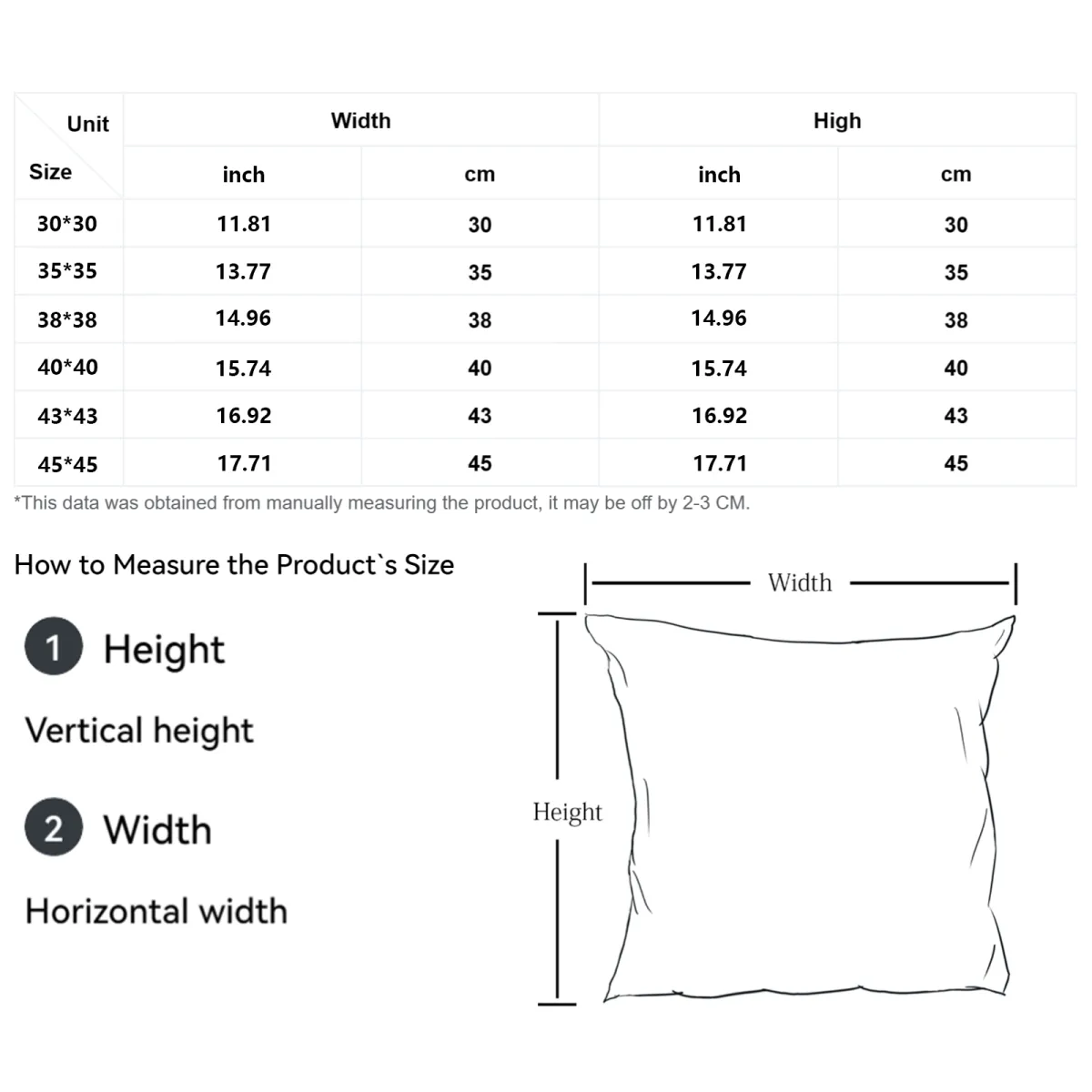 | Product measurements may vary by up to 1~3cm |