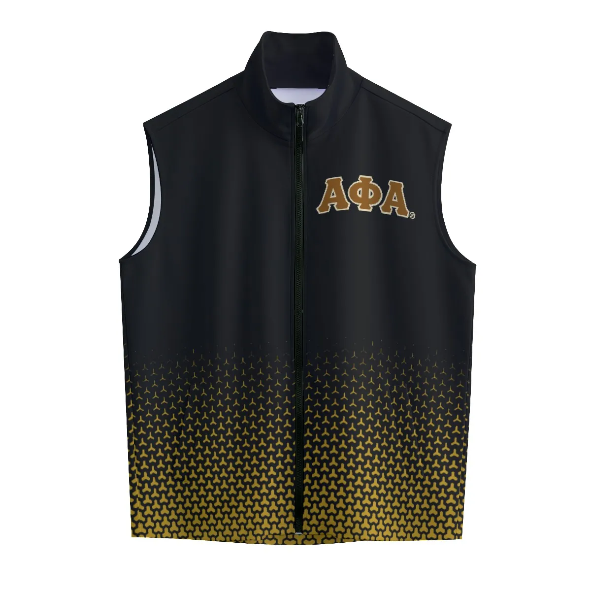 This Alpha Phi Alpha men’s vest delivers modern fraternity style with sleek black and old gold all-over print detailing. Perfect for layering at step shows, homecoming weekends, or casual chapter events, this lightweight stand-up collar piece works as hard as you do. The D9 Standard brings premium Alpha gear to your wardrobe.