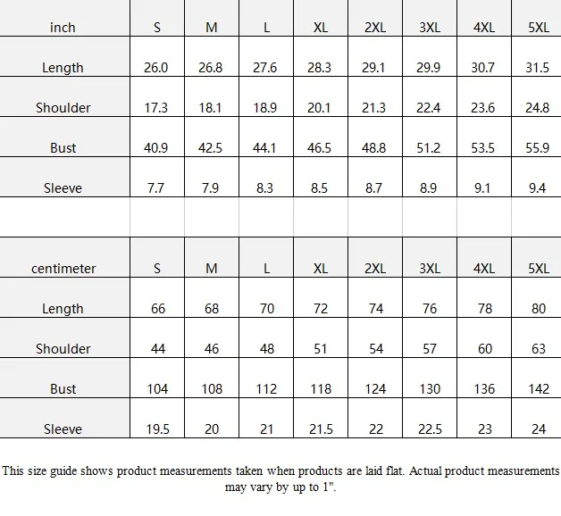 | centimeter | S | M | L | XL | 2XL | 3XL | 4XL | 5XL |