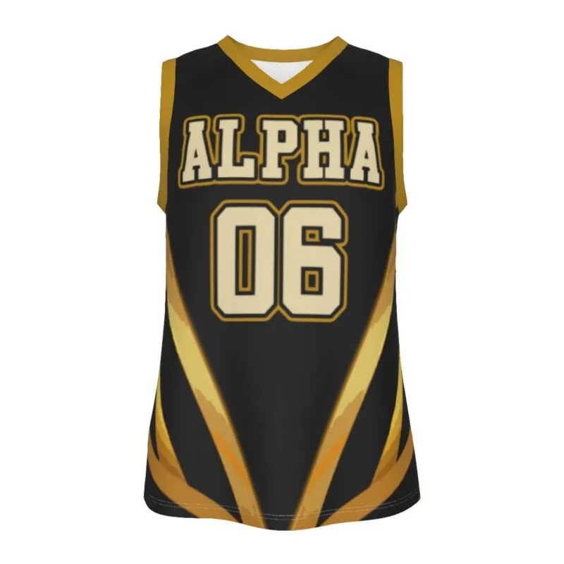 This Alpha Phi Alpha men’s basketball top brings athletic style to your wardrobe in signature black and old gold. The moisture-wicking polyester V-neck design works perfectly for step show practice, game day, or casual campus wear. From The D9 Standard—premium apparel for the Alphas.