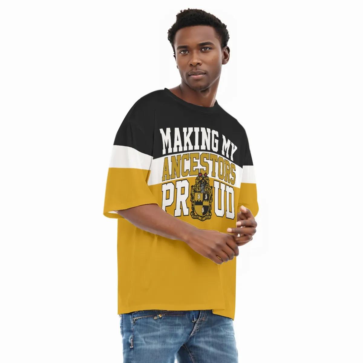 This Alpha Phi Alpha shirt features a relaxed drop shoulder design in the fraternity’s iconic black and old gold colors. Made from a comfortable polyester-spandex blend, it’s ideal for chapter meetings, campus wear, or as one of your go-to alpha phi alpha probate gifts. Represent the Alphas with pride from The D9 Standard.