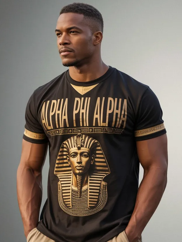 Show off fraternity pride with the Alpha Phi Alpha Golden Pharaoh Summer T-shirt. Comfortable, stylish, adorned with iconic fraternity symbols – perfect for summer socials.
