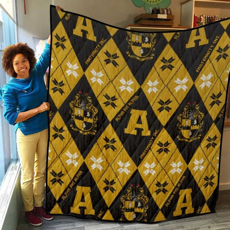 This Alpha Phi Alpha lightweight quilt in signature black and old gold delivers year-round comfort whether you’re resting up before homecoming or relaxing after chapter events. One of our most versatile alpha phi alpha gifts that works as both bedding and décor. The D9 Standard.