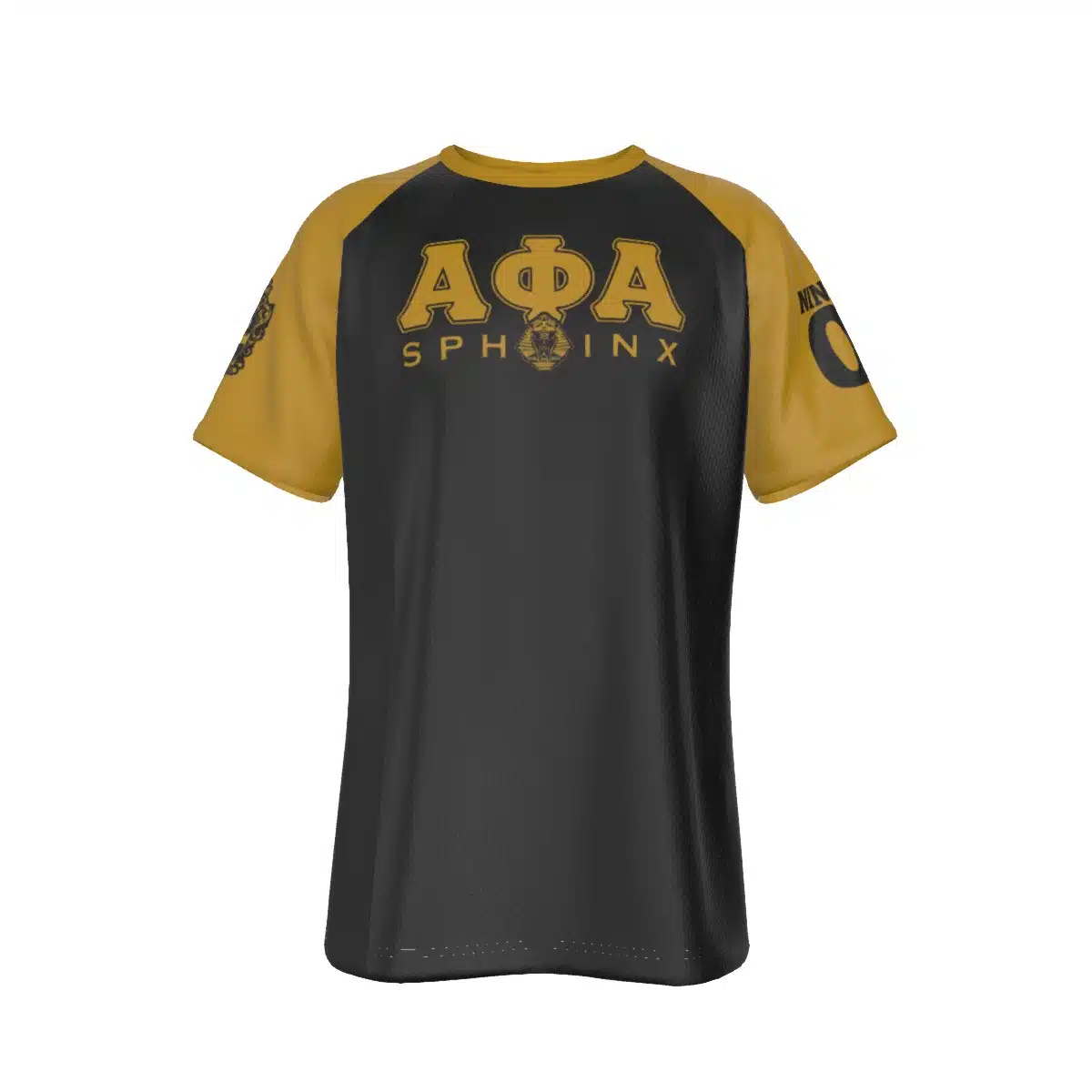Alpha Phi Alpha men’s all-over print tee featuring the iconic Sphinx symbol in black and old gold. This breathable polyester shirt works as well for chapter events and step shows as it does for campus wear. Whether you’re shopping for alpha phi alpha probate gifts or upgrading your own collection, trust The D9 Standard.