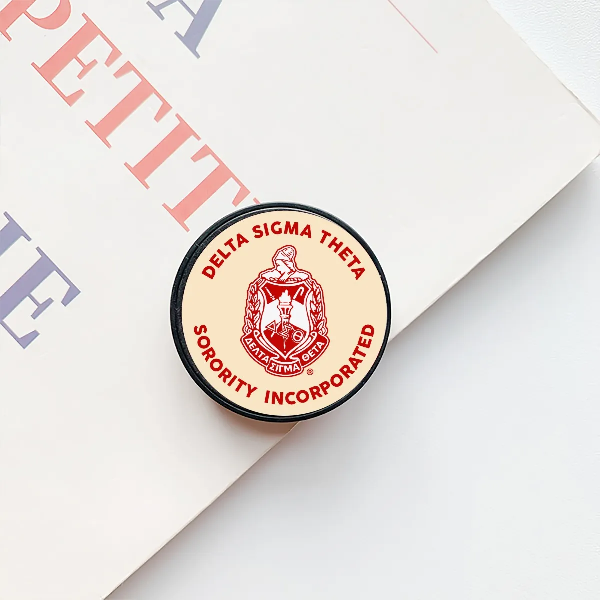 Delta Sigma Theta women’s airbag phone holder delivers functional DST paraphernalia in your sorority’s signature crimson and cream. Keep your device secure during step shows, chapter meetings, or everyday campus life with this must-have DST merch. Exclusively from The D9 Standard.