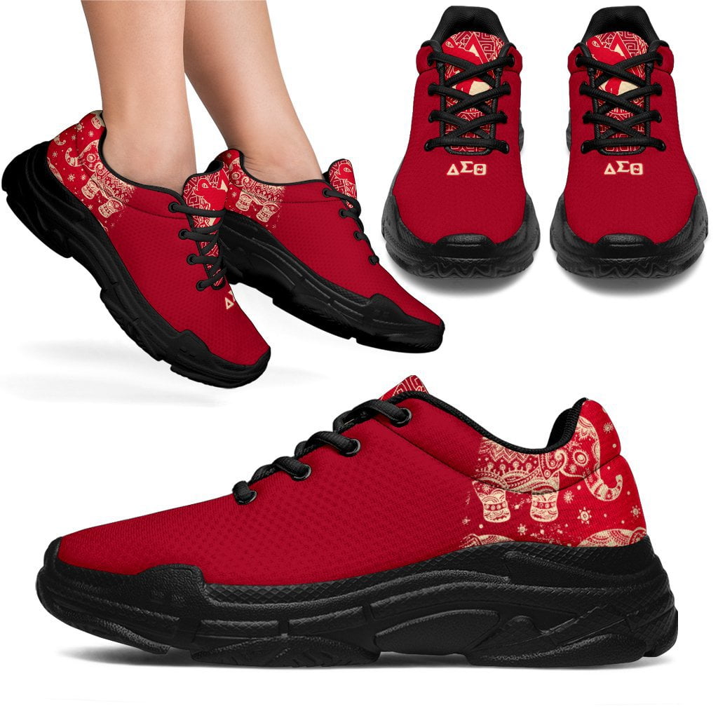 Delta Sigma Theta women’s chunky sneakers bring bold crimson and cream style to every step show and campus event. This DST paraphernalia features breathable mesh construction with memory foam comfort, making it essential DST merch for Deltas who want to represent with comfort and flair. The D9 Standard.