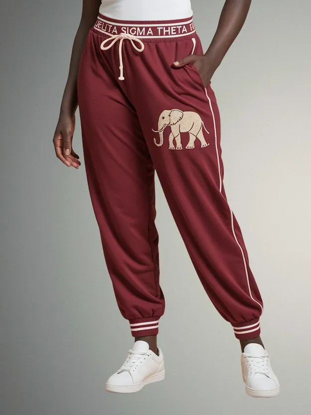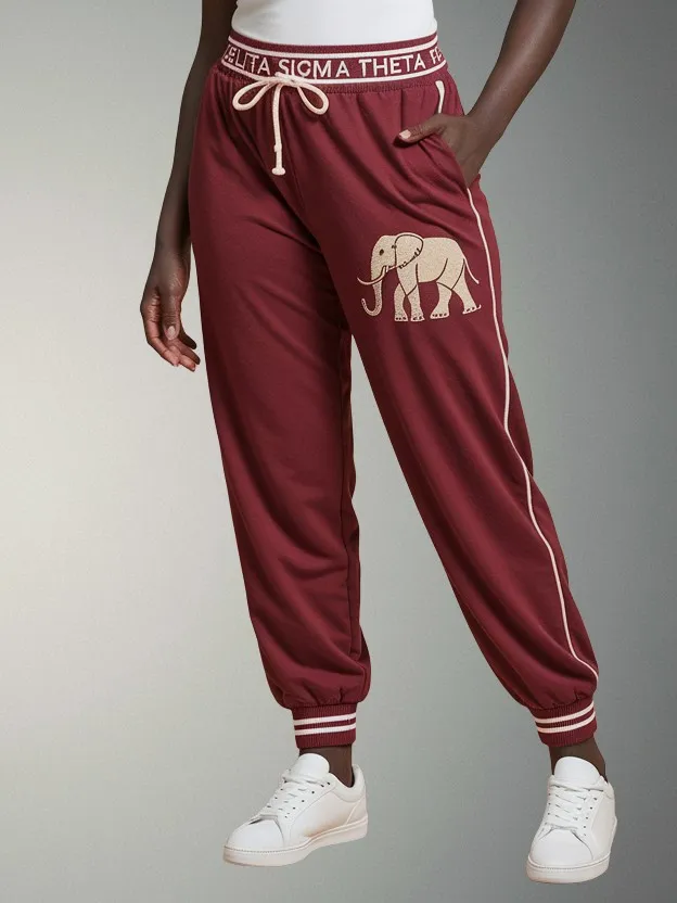 Delta Sigma Theta Crimson Heritage Track Pants: Comfortable, stylish, showcasing sorority pride. Features high-quality embroidery, adjustable waistband, perfect for campus strolls or workout sessions.