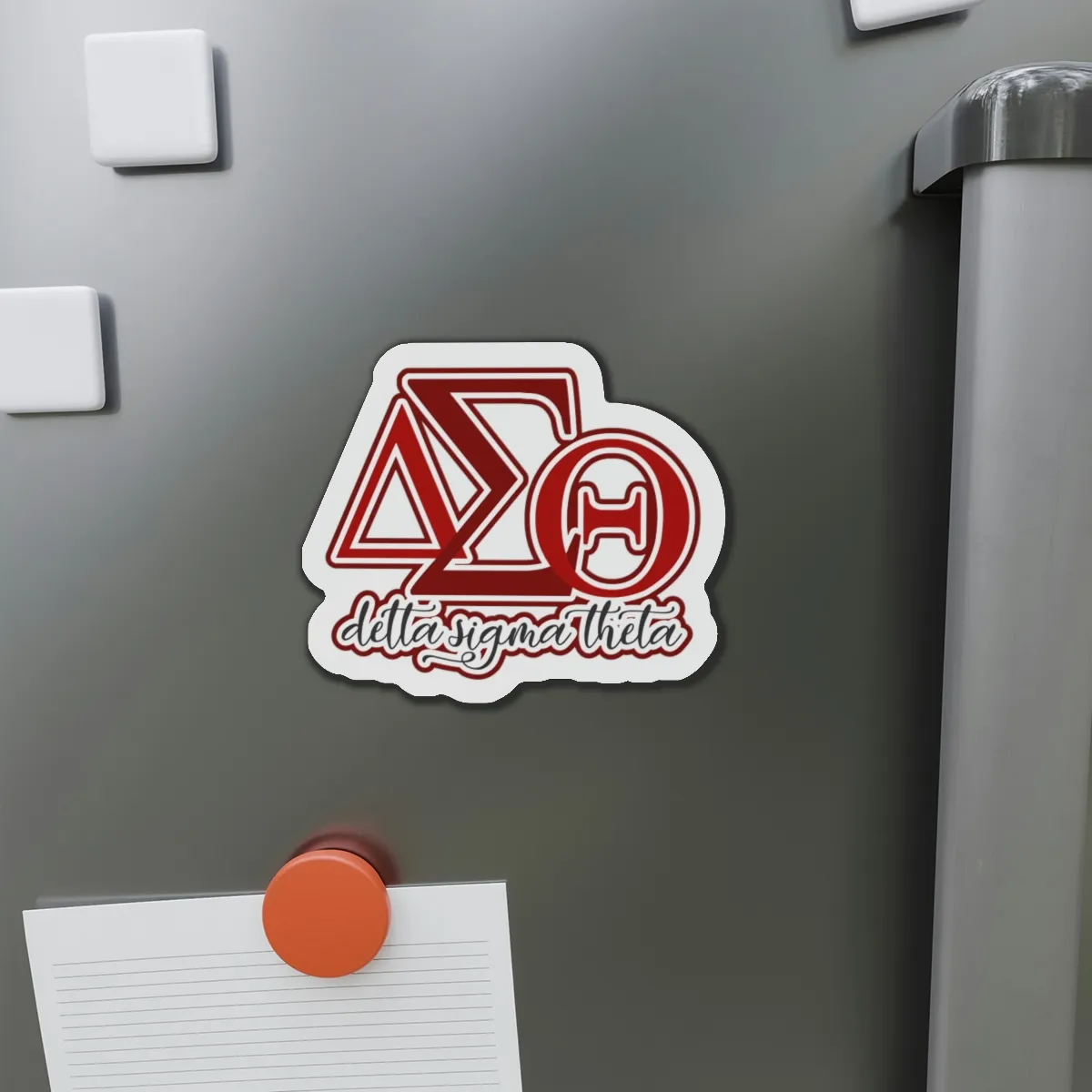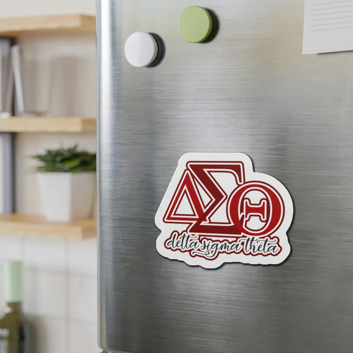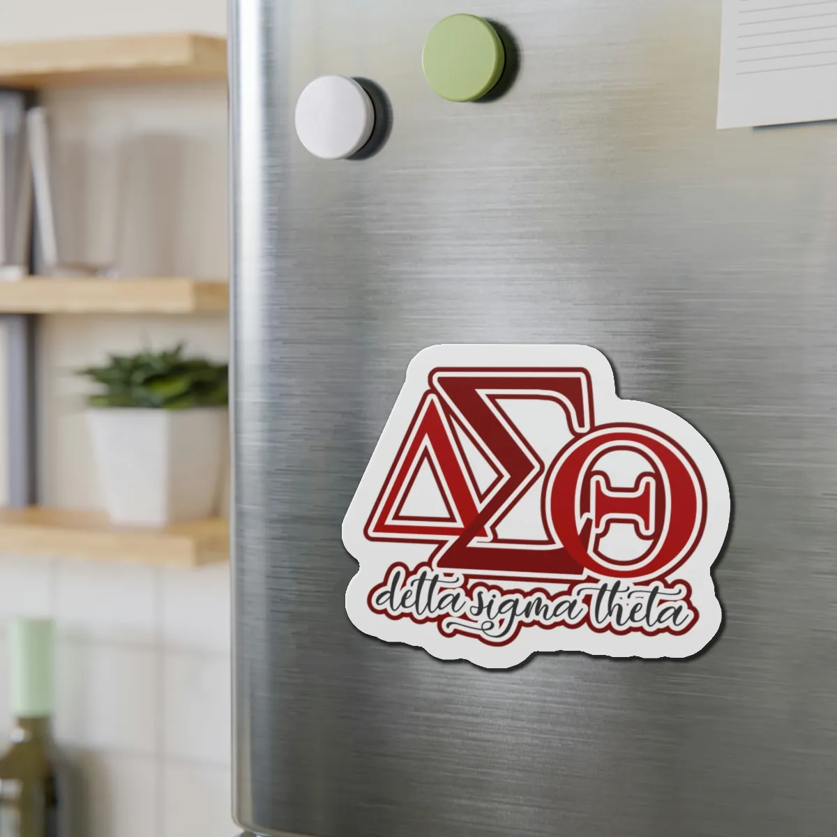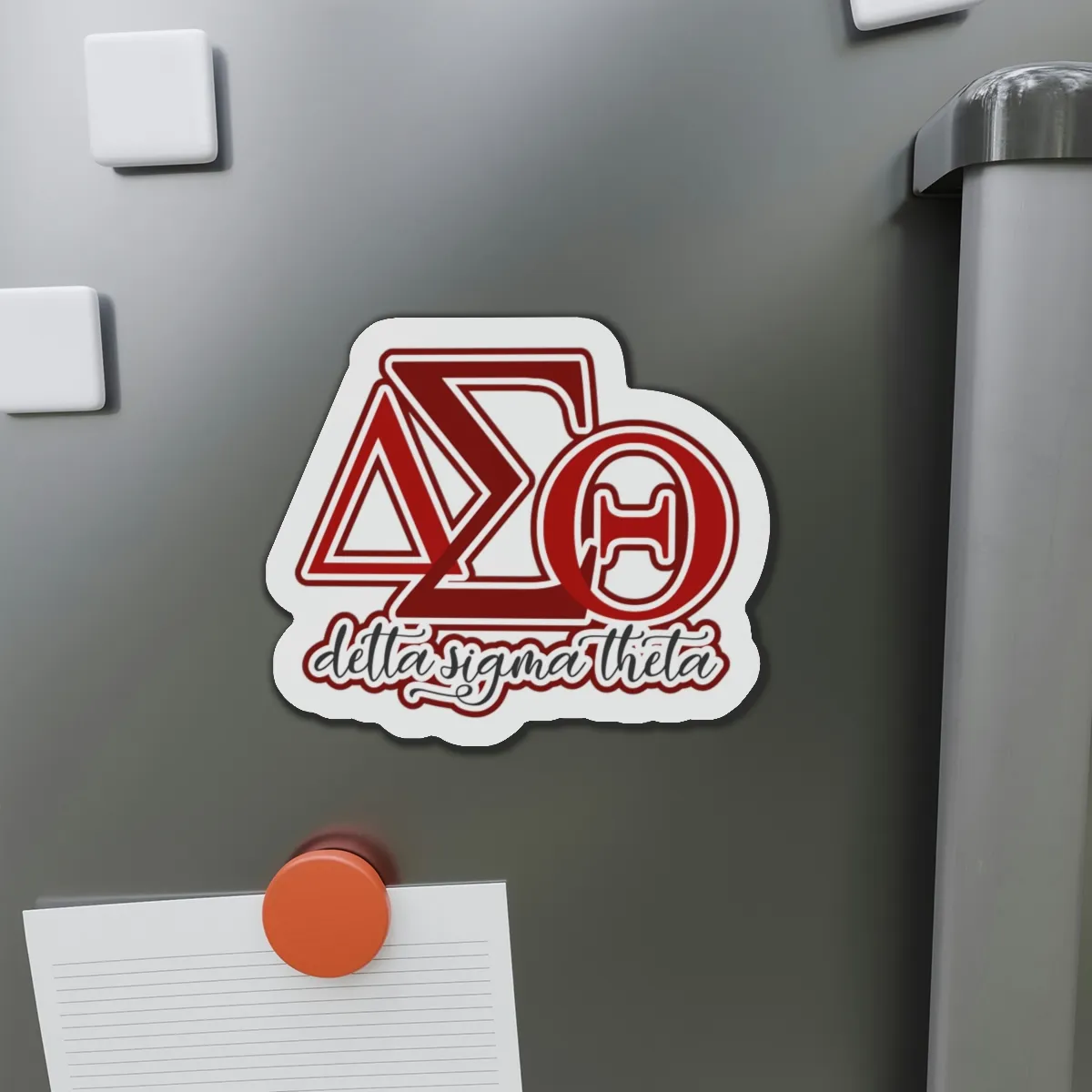 Delta Sigma Theta die-cut magnets bring custom-shaped DST paraphernalia to your fridge, locker, or office space. These crimson and cream accessories showcase your sisterhood pride at chapter meetings, homecoming tailgates, and beyond. Elevate your DST merch collection with The D9 Standard.