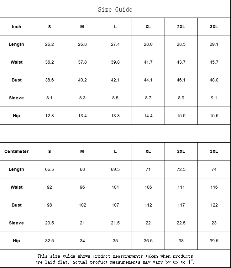 | Centimeter | S | M | L | XL | 2XL | 3XL |