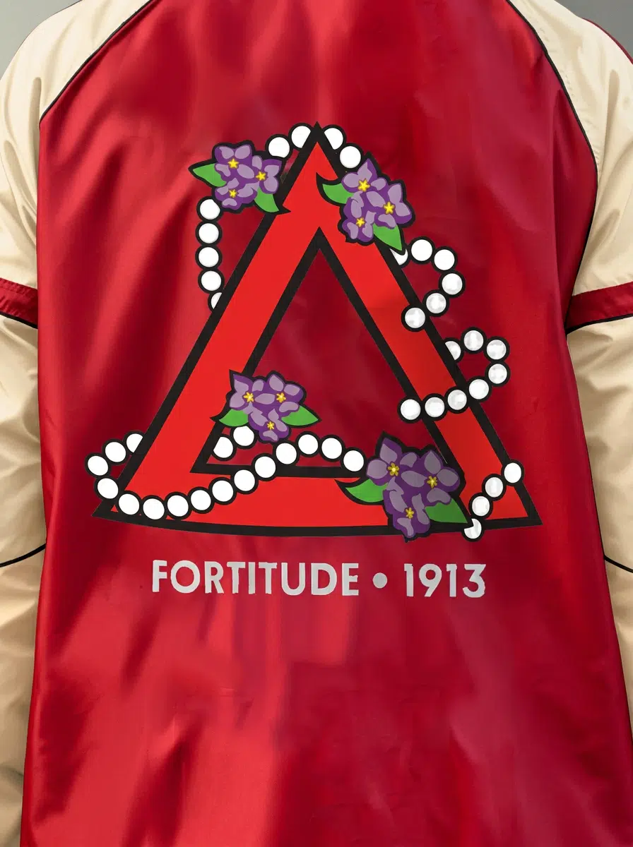 Delta Sigma Theta women’s windbreaker showcasing the Fortitude emblem and 1913 heritage in iconic crimson and cream. This DST paraphernalia piece delivers lightweight coverage for step shows, chapter meetings, and game days. Represent your sisterhood in style with The D9 Standard.