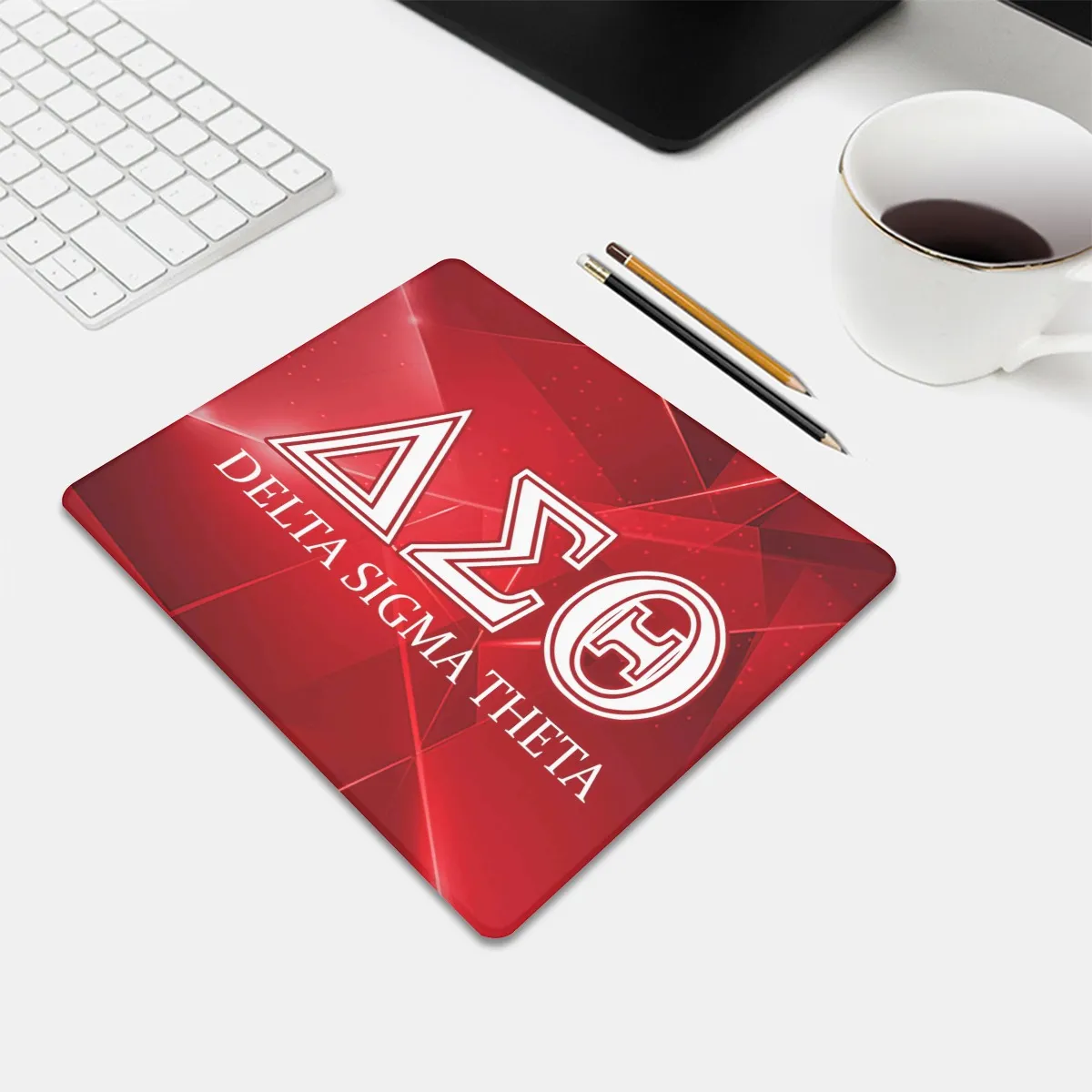 Delta Sigma Theta women’s mousepad featuring iconic DST symbols in crimson and cream. This essential DST paraphernalia brings sorority pride to your workspace, whether you’re studying on campus or working from home. Elevate your desk setup with quality DST merch from The D9 Standard.