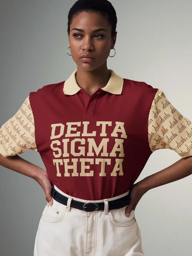 This Delta Sigma Theta polo for women delivers timeless DST pride in signature crimson and cream. Elevate your chapter meetings and sisterhood events with this refined delta sigma theta shirt that blends sorority tradition with everyday style. Represent excellence with The D9 Standard.