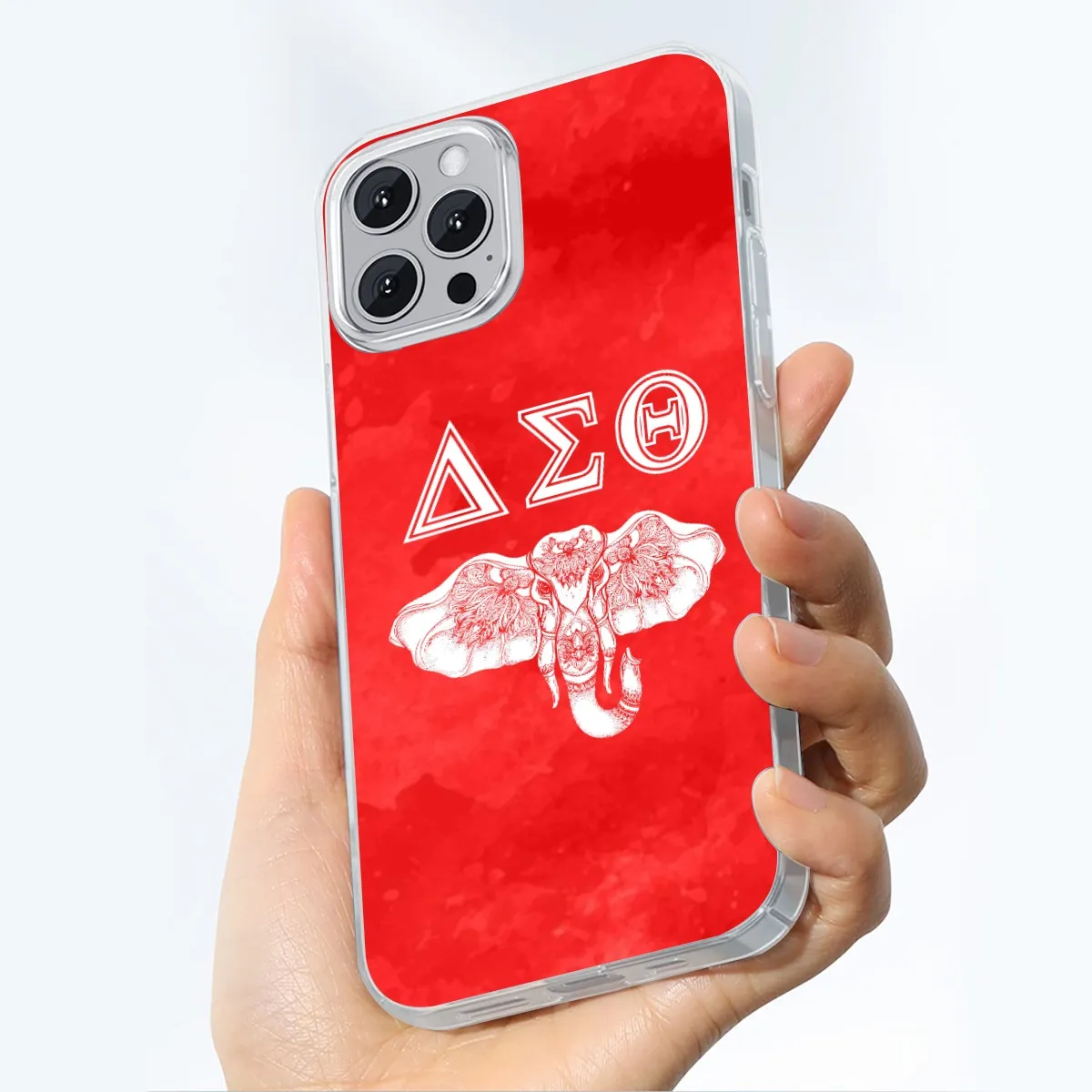 Delta Sigma Theta women’s phone case featuring a stunning watercolor design in crimson and cream. This protective faux leather DST paraphernalia keeps your device safe during chapter meetings, step shows, and everyday campus life. Elevate your DST merch collection with The D9 Standard.