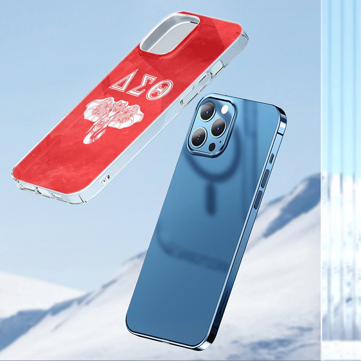 Delta Sigma Theta women’s phone case featuring a stunning watercolor design in crimson and cream. This protective faux leather DST paraphernalia keeps your device safe during chapter meetings, step shows, and everyday campus life. Elevate your DST merch collection with The D9 Standard.