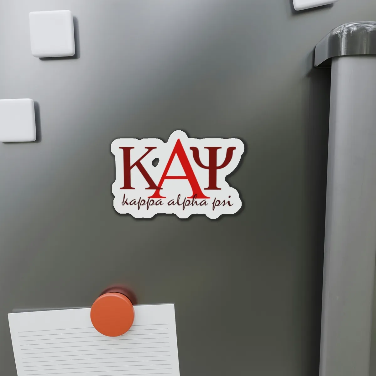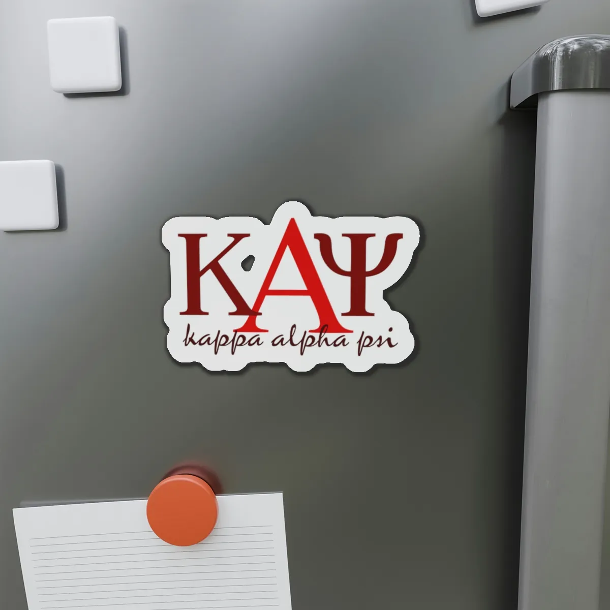 Kappa Alpha Psi die-cut magnets in bold crimson and cream add Nupe pride to any magnetic surface. This essential kappa alpha psi merch sticks strong on lockers, fridges, and office spaces while you rep your letters. Premium nupe merch from The D9 Standard.