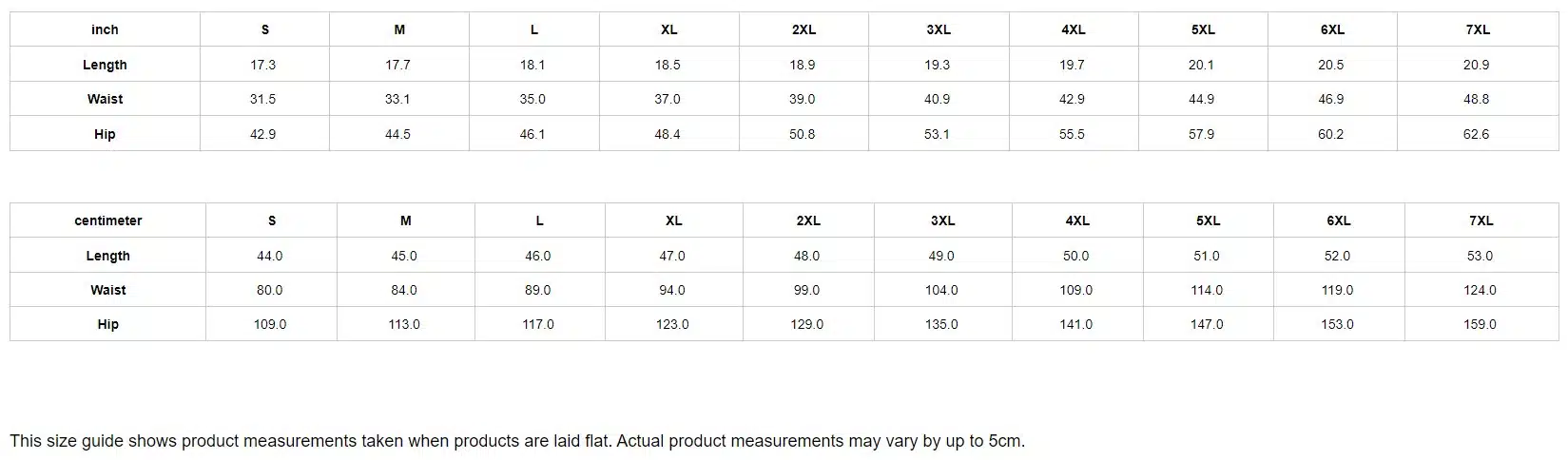 Centimeter S M L XL 2XL 3XL 4XL 5XL 6XL 7XL