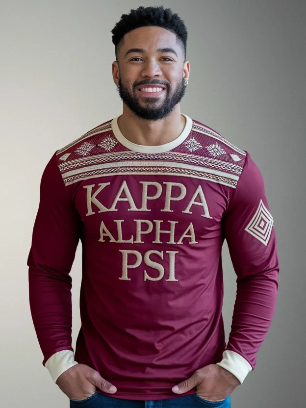 Kappa Alpha Psi men’s long sleeve performance shirt combining moisture-wicking comfort with crimson and cream heritage pride. This athletic-fit design stands out among Kappa Alpha Psi shirts for chapter workouts, tailgates, and weekend campus wear. Premium Nupe merch from The D9 Standard.