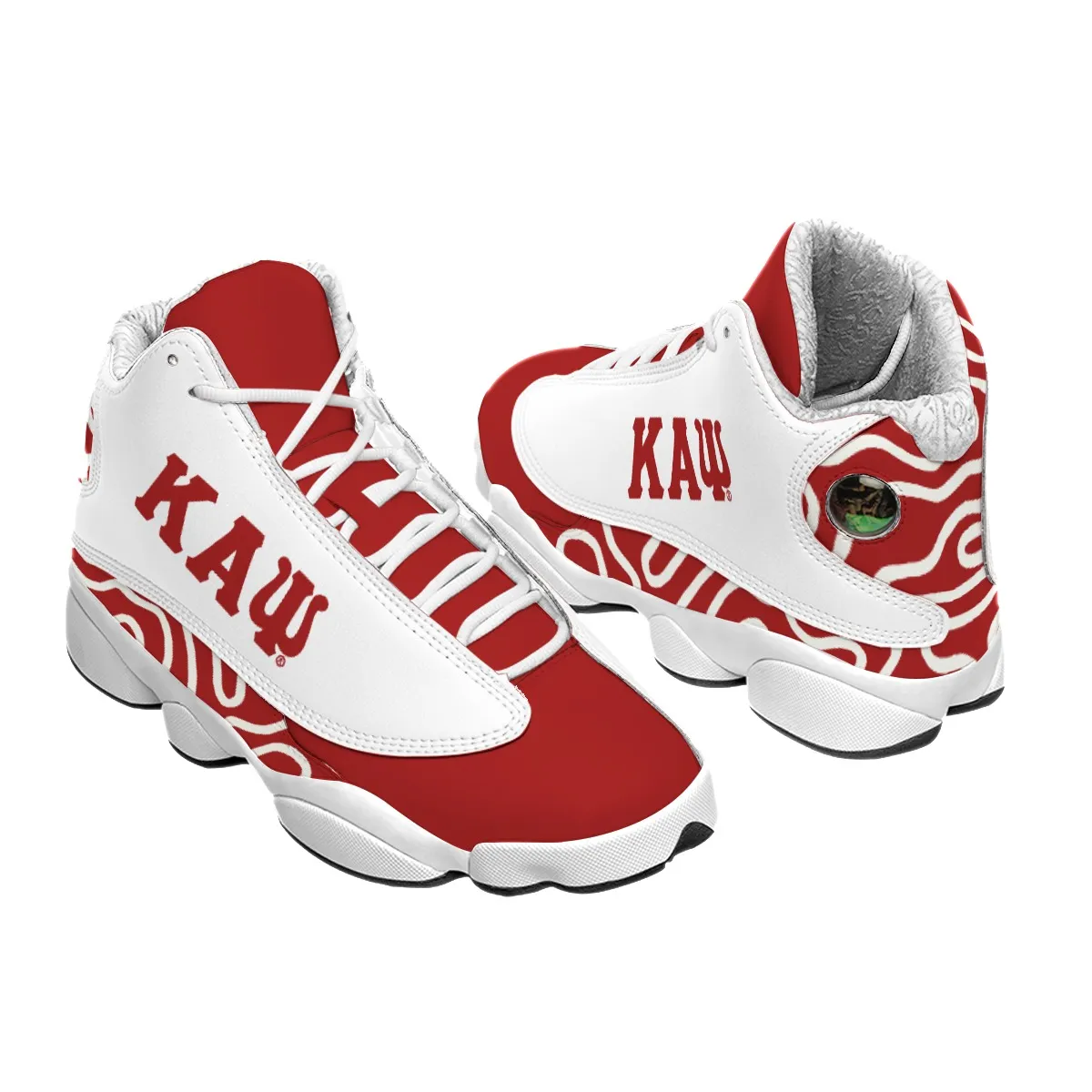 Kappa Alpha Psi men’s curved basketball shoes bring bold crimson and cream style to every step. These thick-soled kicks are built for Nupes who want their Kappa Alpha Psi merch to stand out at campus events, homecoming weekend, or casual game day gatherings. Represent with confidence from The D9 Standard.