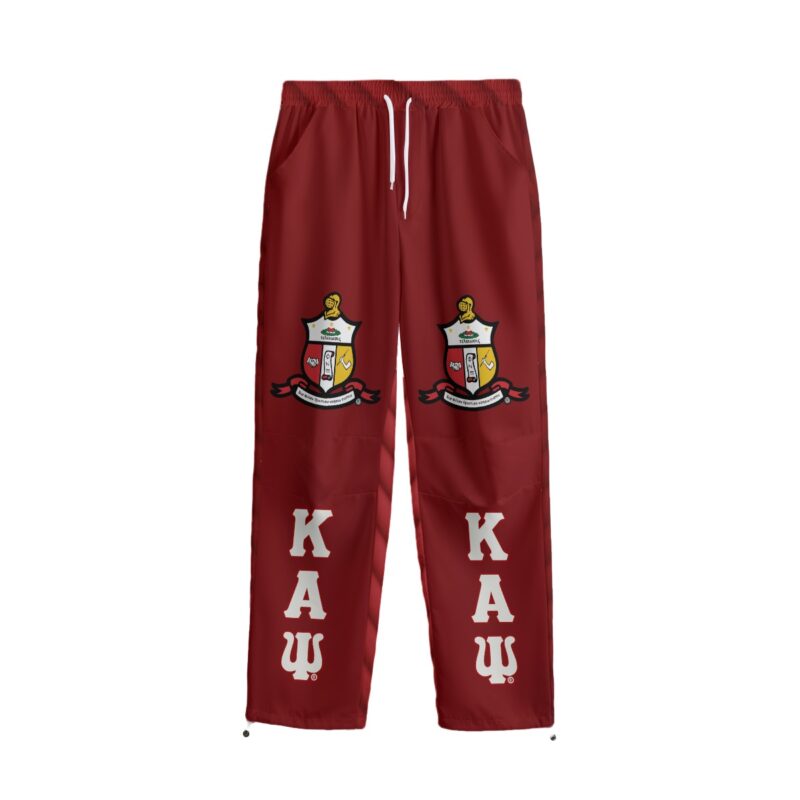 Kappa Alpha Psi men’s casual pants featuring bold crimson and cream patches that elevate your Nupe merch collection. The relaxed fit and adjustable cuffs make these perfect for step practice, chapter meetings, or weekend hangouts. Premium Kappa Alpha Psi merch from The D9 Standard.