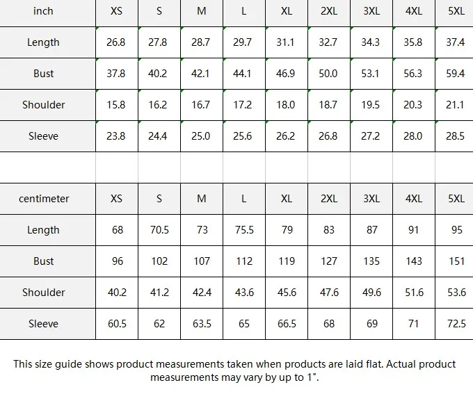 | centimeter | XS | S | M | L | XL | 2XL | 3XL | 4XL | 5XL |