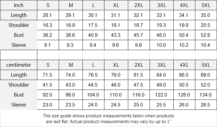 centimeter S M L XL 2XL 3XL 4XL 5XL