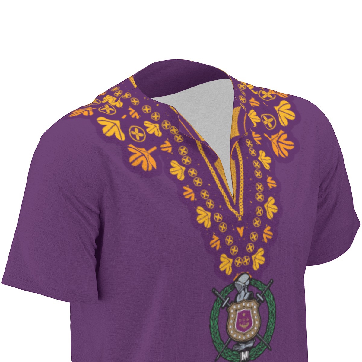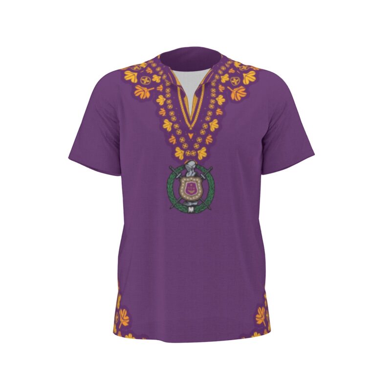 This Omega Psi Phi shirt brings bold African-inspired style to your Que wardrobe with vibrant purple and gold dashiki print. Rock this standout piece at step shows, cookouts, or casual chapter events when you want something beyond the standard omega psi phi polo. Represent with cultural pride from The D9 Standard.