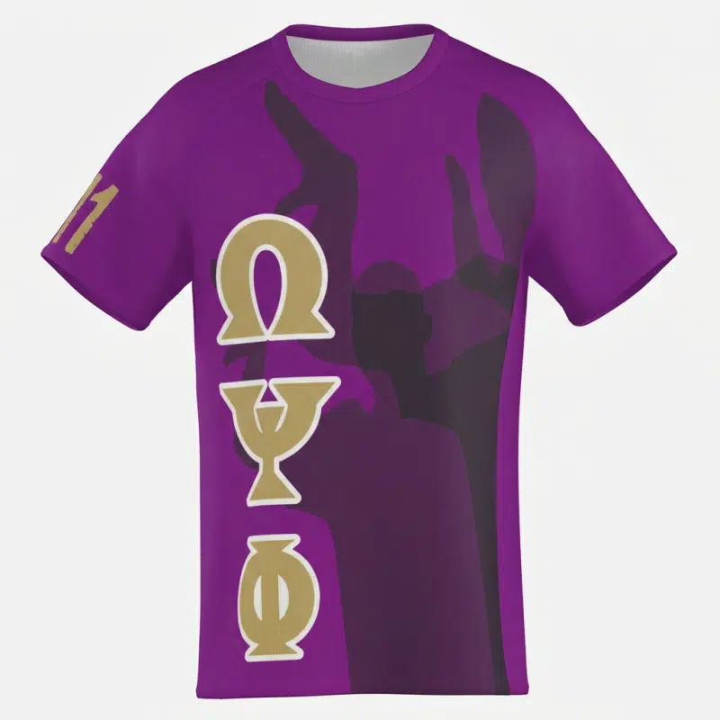 Omega Psi Phi men’s cut and sew tee featuring bold all-over-print graphics in the fraternity’s iconic purple and gold. This omega psi phi shirt delivers serious style whether you’re heading to a step show or connecting with brothers at chapter events. Exclusively at The D9 Standard.