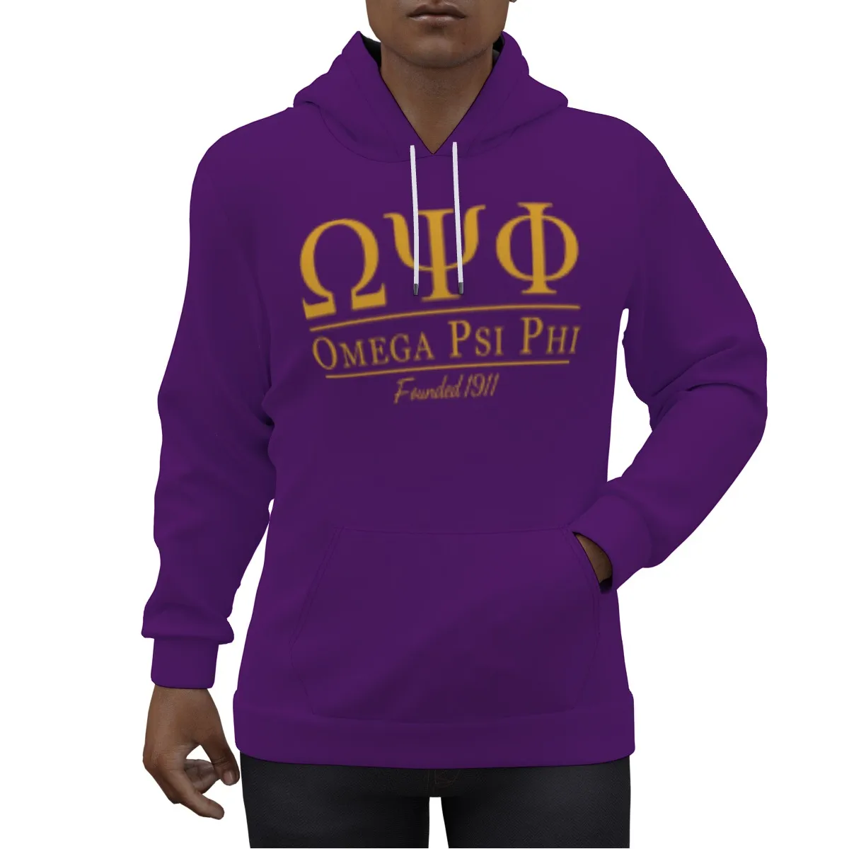 Omega Psi Phi men’s hoodie crafted in premium purple and gold with a performance polyester-spandex blend. This Omega Psi Phi hooded sweatshirt delivers comfort for step show rehearsals, chapter meetings, or game day tailgates. Quality Que paraphernalia from The D9 Standard.