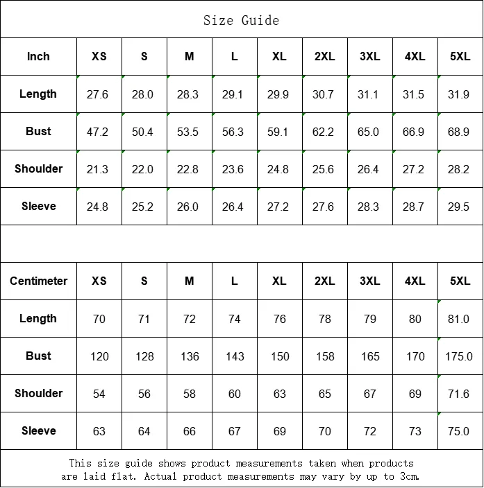Centimeter XS S M L XL 2XL 3XL 4XL 5XL