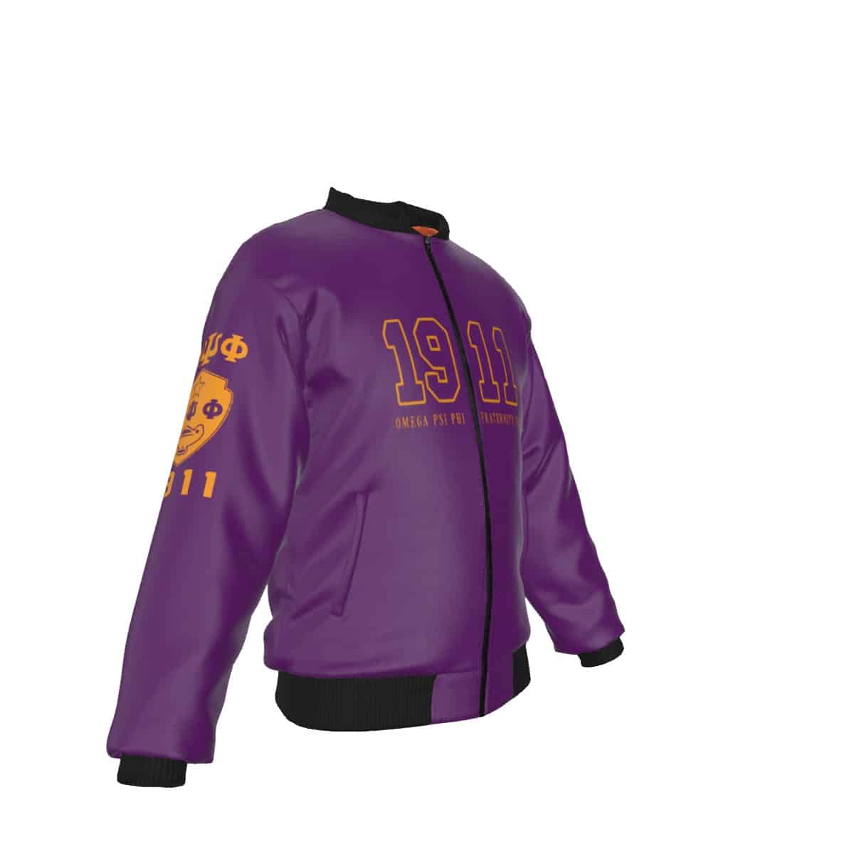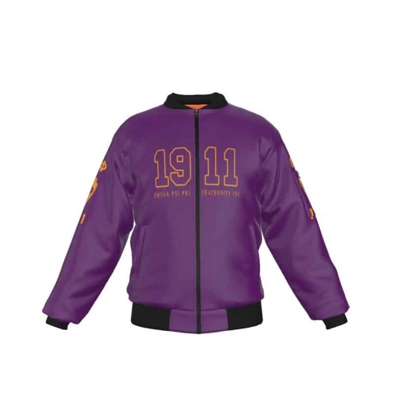 Omega Psi Phi men’s bomber jacket featuring the fraternity’s iconic purple and gold in a sleek, customized design. This premium omega psi phi paraphernalia keeps you warm at chapter events, tailgates, and step shows with windproof polyester and functional pockets. Represent the Ques in style with The D9 Standard.