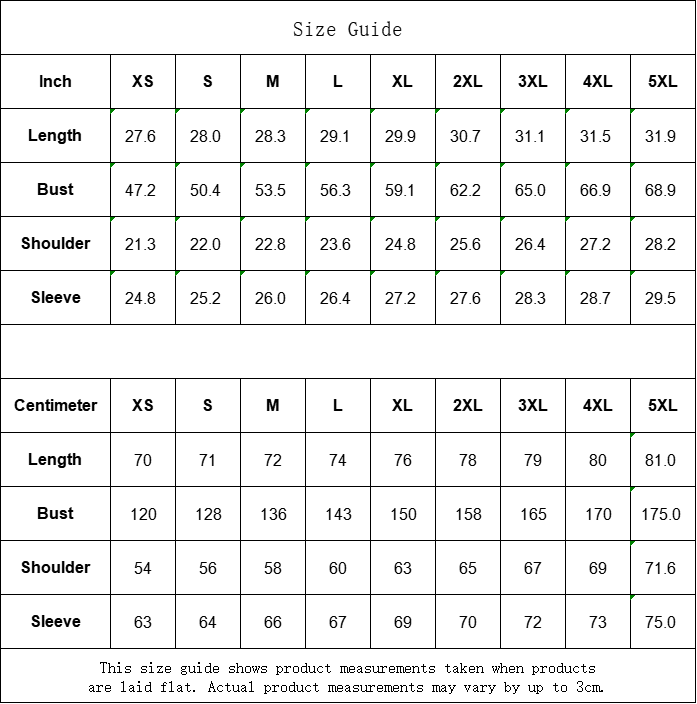 | Centimeter | XS | S | M | L | XL | 2XL | 3XL | 4XL | 5XL |