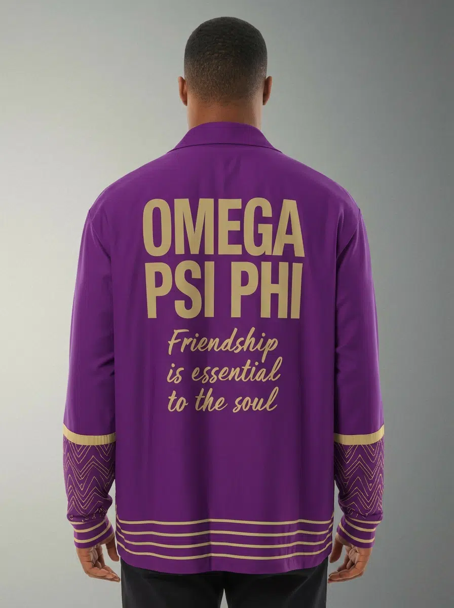 Exude elegance with the Omega Psi Phi tradition cardigan; snug, stylish, featuring fraternity colors, emblem, and perfect for showcasing Greek loyalty and pride.