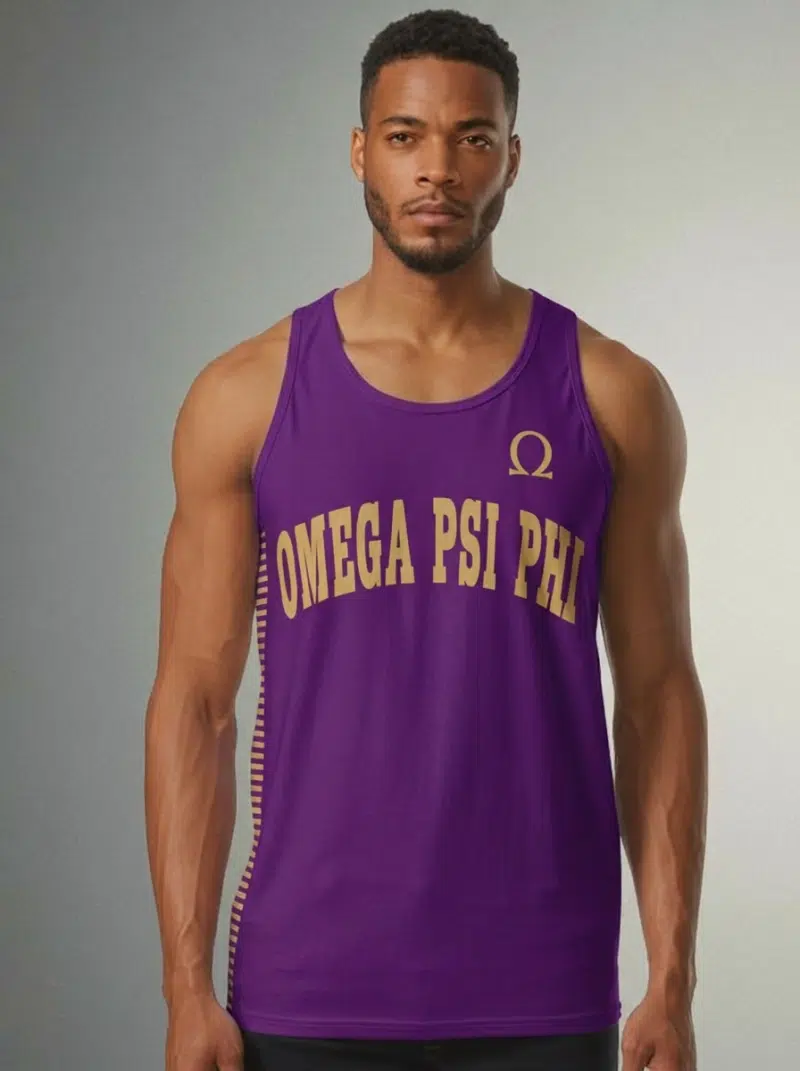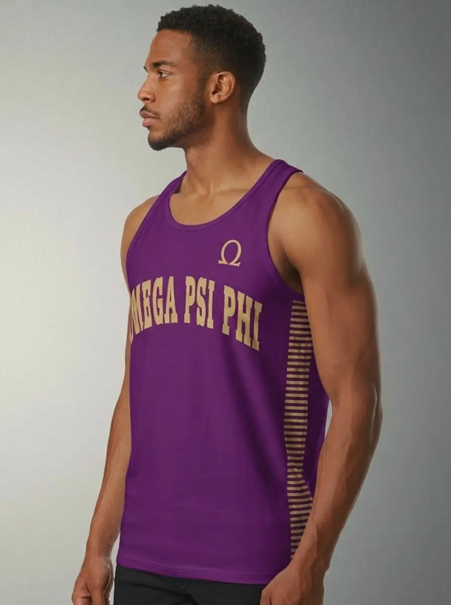 This Omega Psi Phi men’s tank top delivers brotherhood pride in signature purple and gold styling. Whether you’re looking for omega psi phi gifts or adding to your shirt collection for step shows and chapter events, this breathable design keeps you comfortable while repping the Ques. From The D9 Standard.