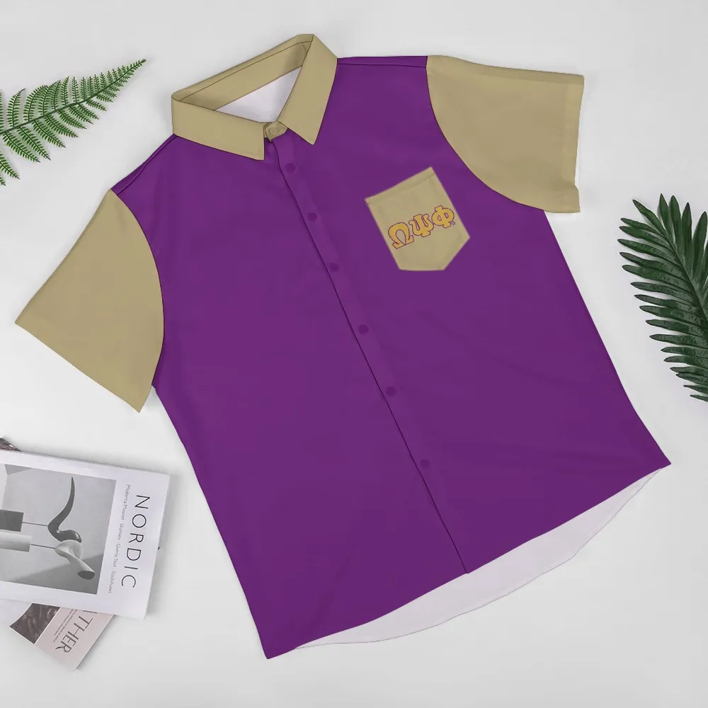 Omega Psi Phi men’s short-sleeved shirt featuring the iconic purple and gold in a refined polo style. This versatile Omega Psi Phi shirt transitions seamlessly from chapter meetings to the golf course, delivering comfort and brotherhood pride wherever you go. Exclusively from The D9 Standard.