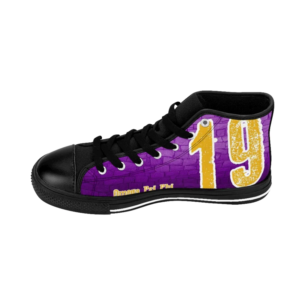 These Omega Psi Phi men’s high top shoes showcase your founding year pride in royal purple and gold. Essential omega psi phi paraphernalia for step shows, homecoming weekends, and repping the Ques on campus. Premium nylon construction built to last as long as your brotherhood. The D9 Standard.
