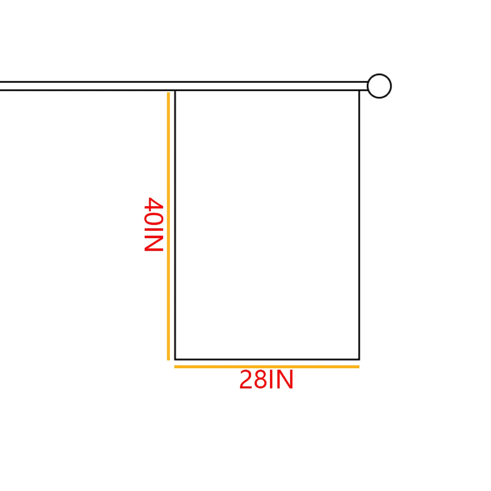 40 inches long, 28 inches wide, pole-shaped garden flag; Only flags are shipped; Please bring your own flagpole; A circumference of 3.15 inches of the rod is sufficient;