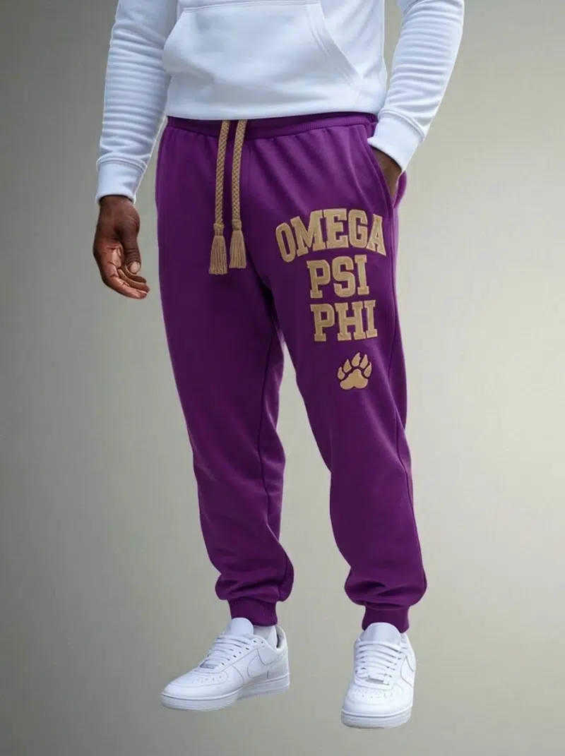 Omega Psi Phi men’s jogger sweatpants designed for Ques who demand comfort without sacrificing fraternity pride. The soft fleece construction showcases your purple and gold at step shows, campus events, or weekend lounging. When brothers search for premium omega psi phi paraphernalia, they find The D9 Standard.