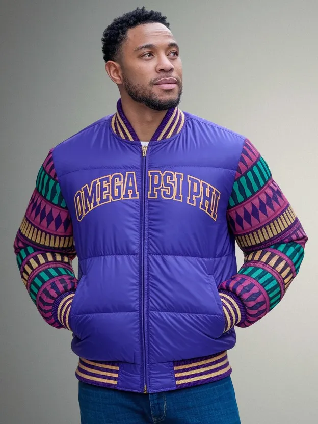 This Omega Psi Phi men’s puffer jacket brings fraternity pride to every campus moment with bold purple and gold styling. Whether you’re stepping into chapter meetings or repping the Ques at homecoming, this omega psi phi jacket delivers warmth and style. Premium omega psi phi paraphernalia from The D9 Standard.