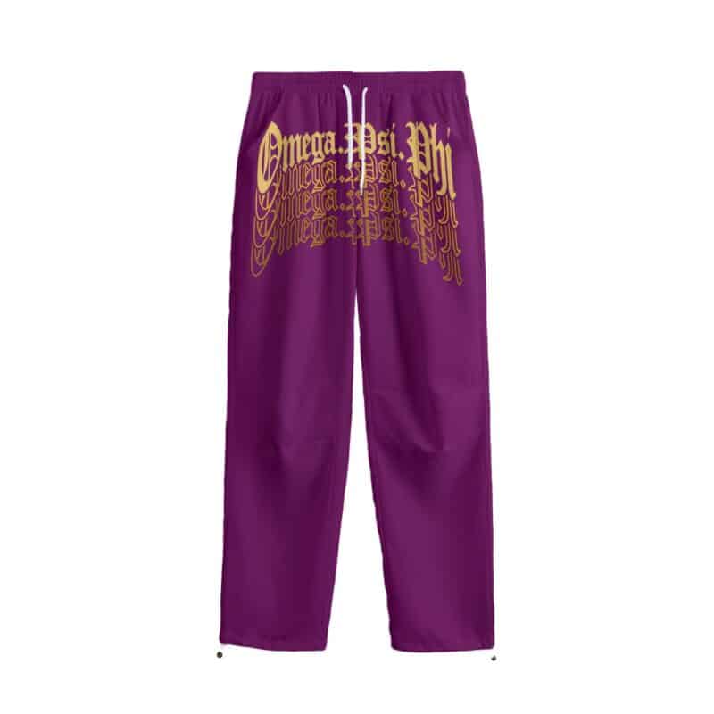 Omega Psi Phi men’s casual pants featuring a striking purple and gold letter gradient design on premium polyester fabric. These comfortable joggers work perfectly for chapter meetings, campus life, or weekend wear. Whether you’re shopping for omega psi phi paraphernalia or treating yourself, rep the Ques in style with The D9 Standard.