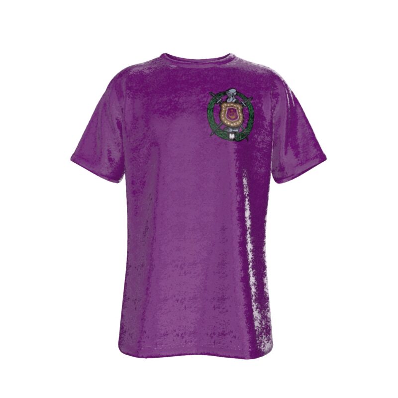 Omega Psi Phi men’s t-shirt crafted from luxurious velvet fabric that brings elevated style to any occasion. This premium omega psi phi shirt features the fraternity’s signature purple and gold in a smooth polyester-spandex blend perfect for step shows, chapter meetings, or weekend wear. Exclusively at The D9 Standard.
